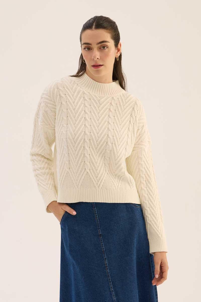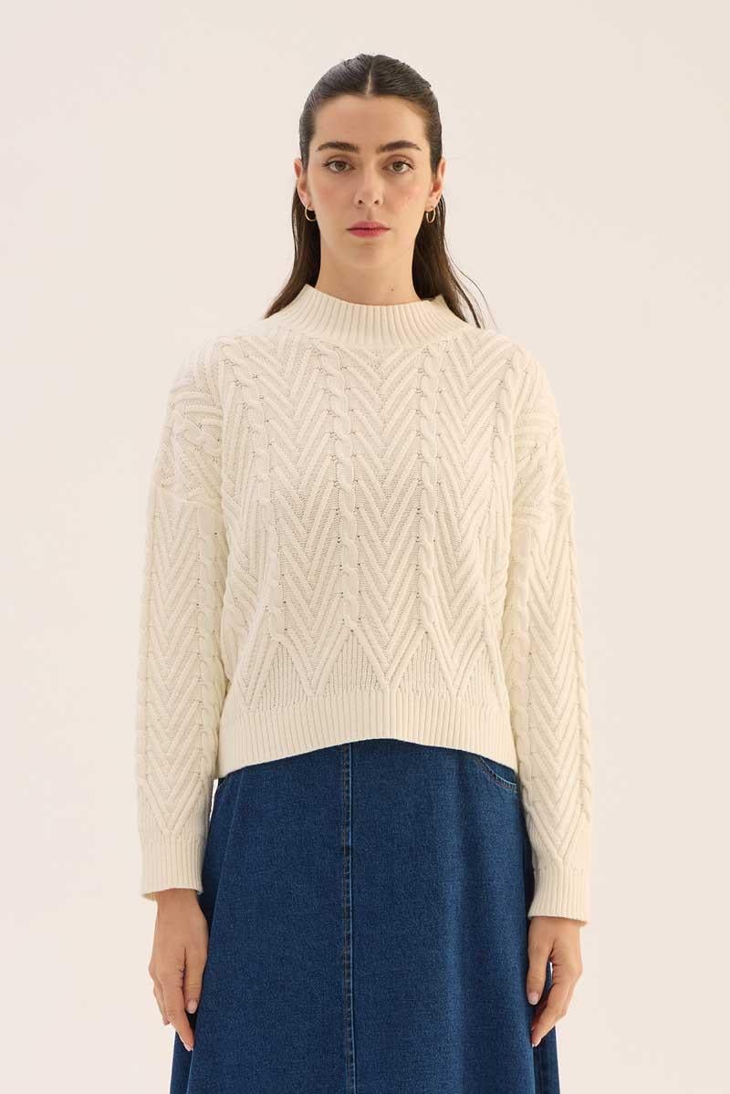 Tags: cotton, diagonal pattern, ecru, knitwear, regular fit, Sweater, winter, women's fashion
