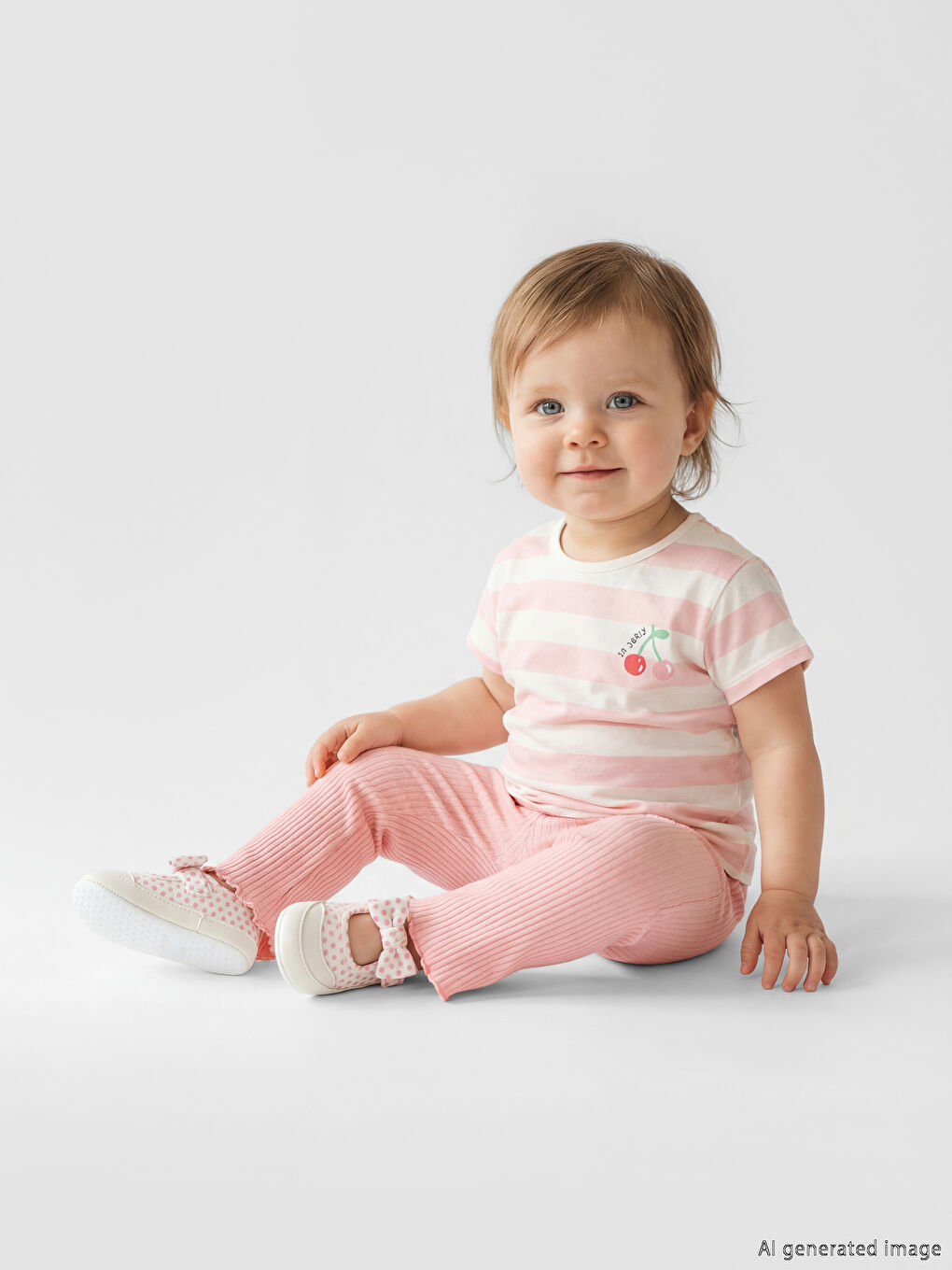 Tags: 2-piece set, baby girl clothes, cotton baby wear, ecru baby outfit, LCW baby collection, newborn set, striped print