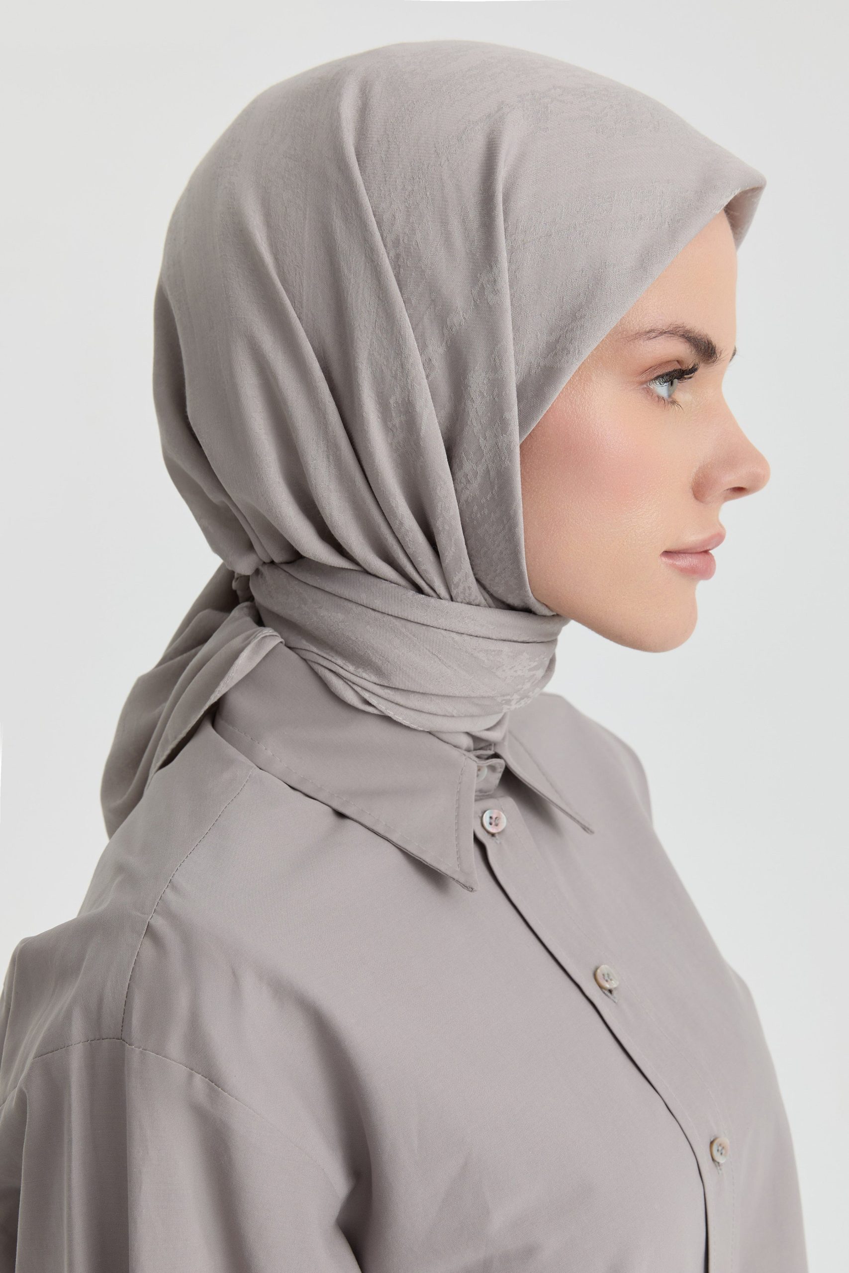 The Efsun Jacquard Scarf emphasizes understated elegance with its delicate patterns. The jacquard weave gives the scarf a slight depth while its matte finish offers a refined look.