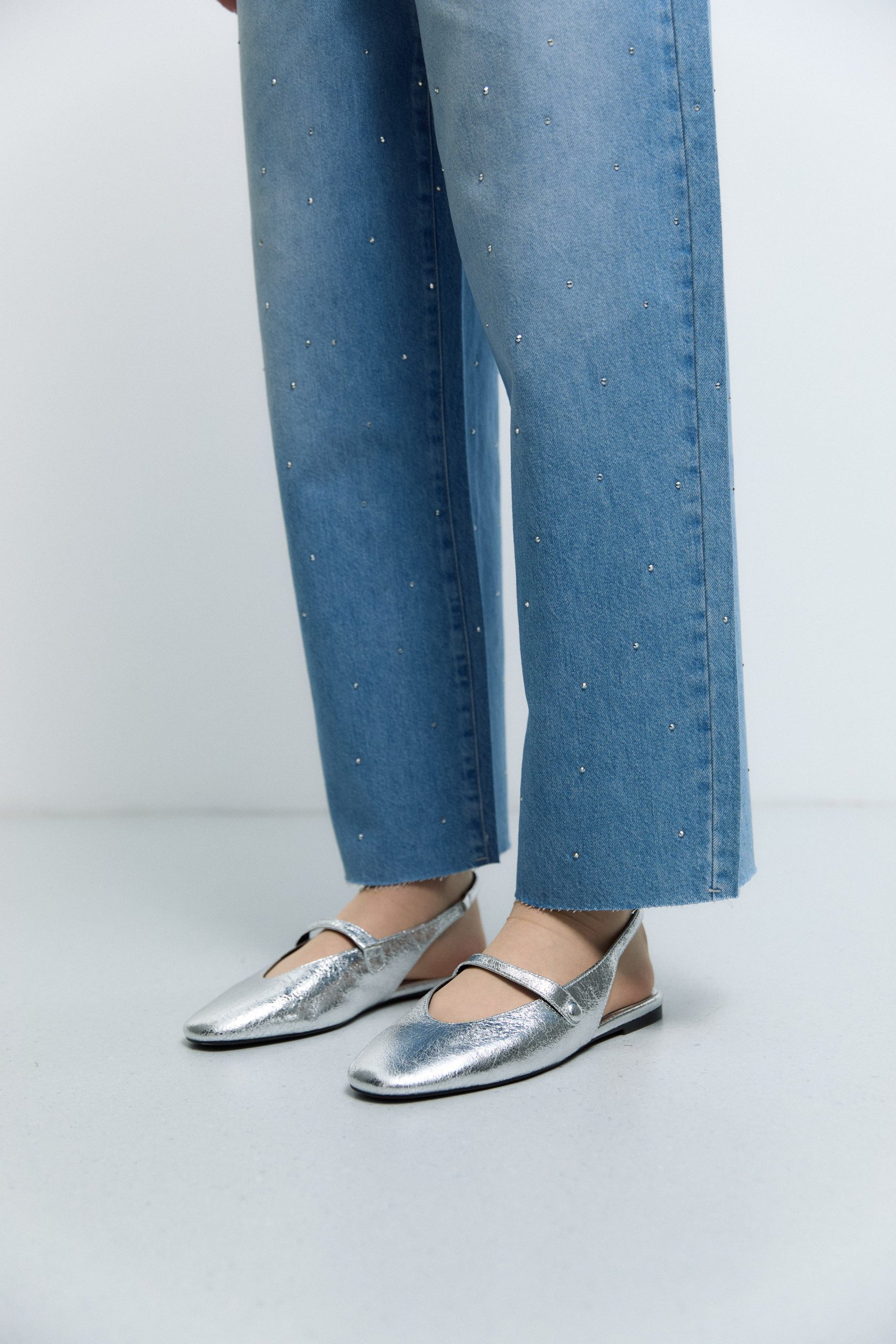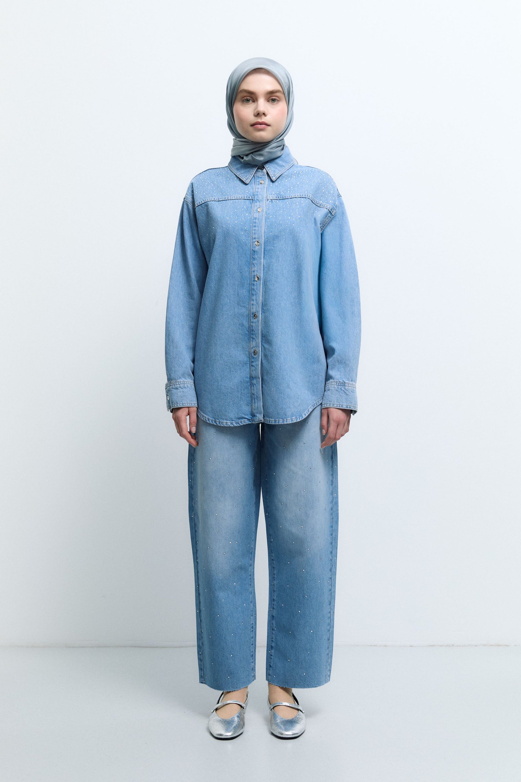 The Embellished Denim Pants enrich timeless denim form with delicately placed embellishments, offering a refined choice for sophisticated and eye-catching combinations.