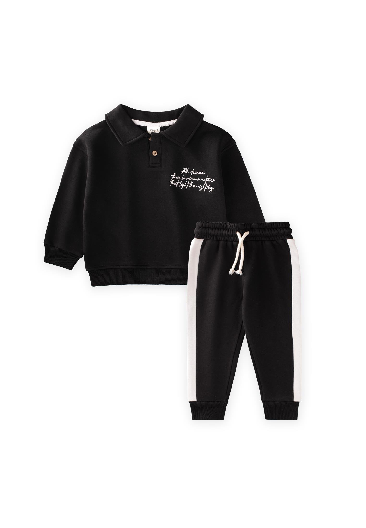 Embroidered Collar Sweatshirt Set for Ages 2-10 in Black