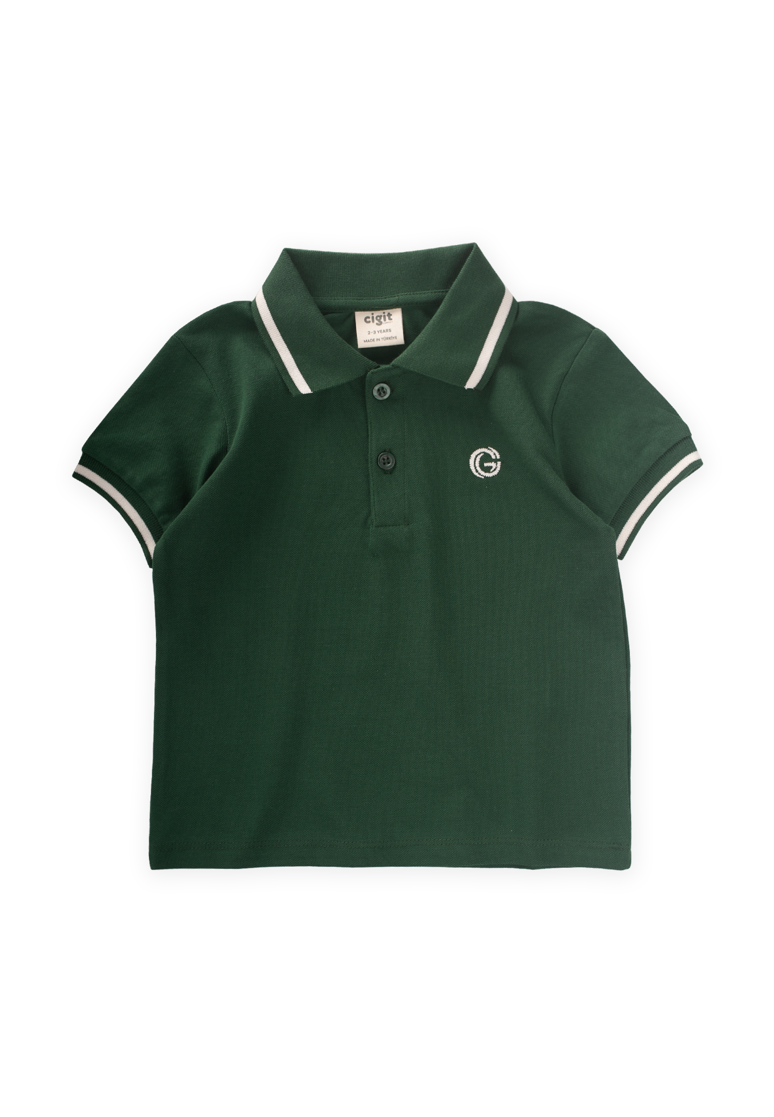 Embroidered Polo Collar T-Shirt 2-10 Years Old Khaki Green