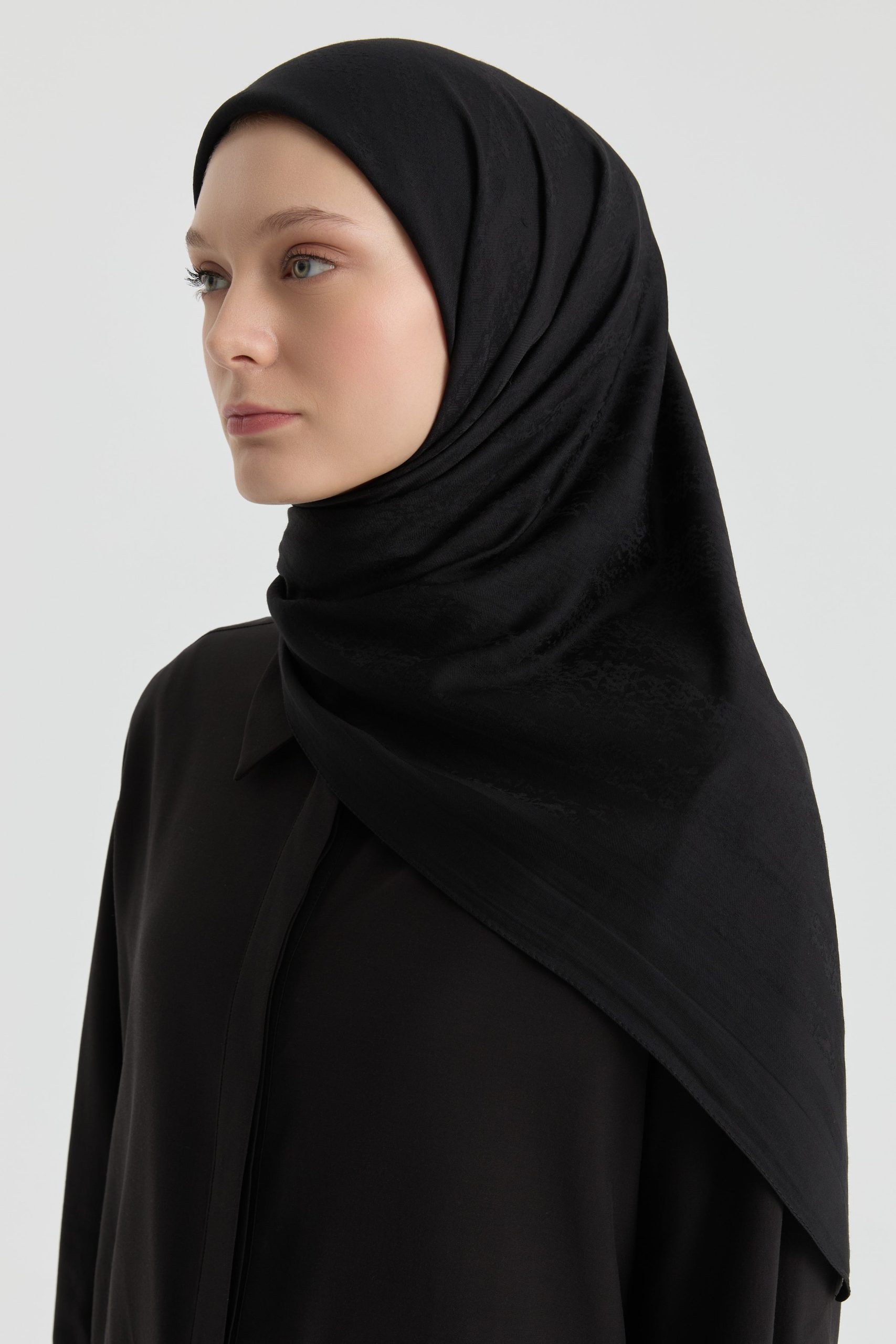 Tags: black scarf, cotton scarf, fashion accessory, jacquard scarf, women's scarf