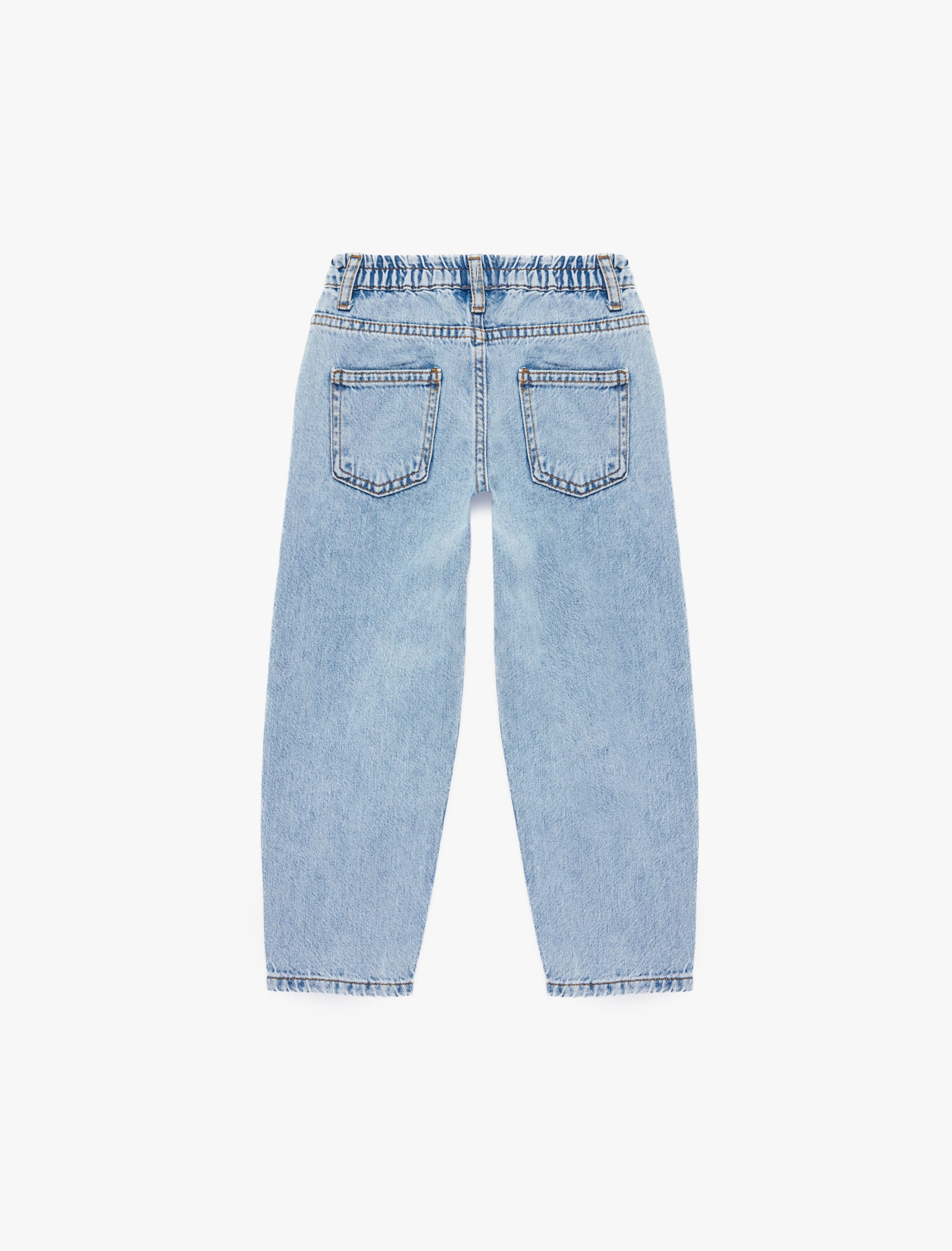 Denim pantolon, balon formuyla miniklerin hareket özgürlüğünü ön planda tutuyor. Rahat kalıbıyla konforlu bir kullanım sunuyor. Beş cepli tasarımıyla fonksiyonel bir seçenek oluyor, düğmeli kapama detayı ile de pratiklik sağlıyor. Farklı parçalarla kolayca kombinlenebiliyor.