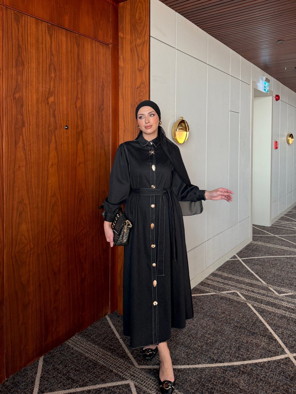 Ivory Asimetrik Yaka Detay Triko Elbise – Siyah