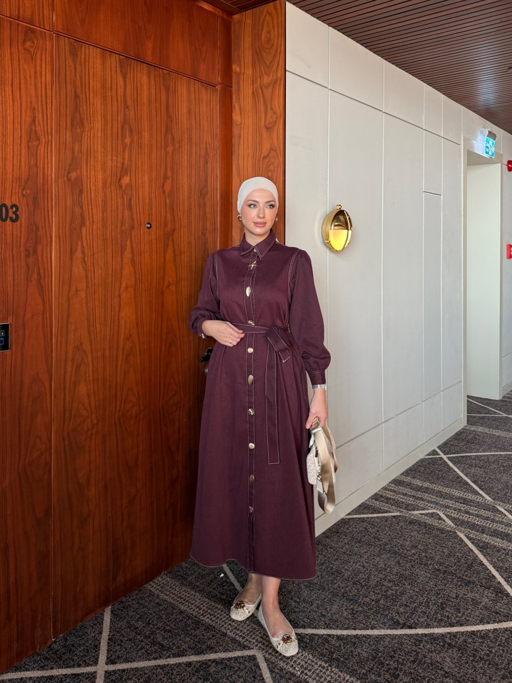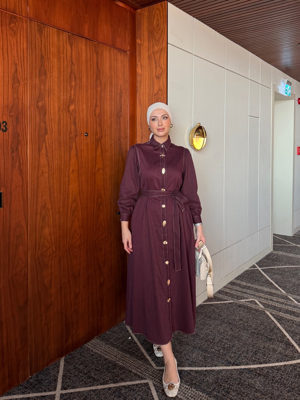 DEGRADE DESENLİ KETEN ELBİSE LİLA