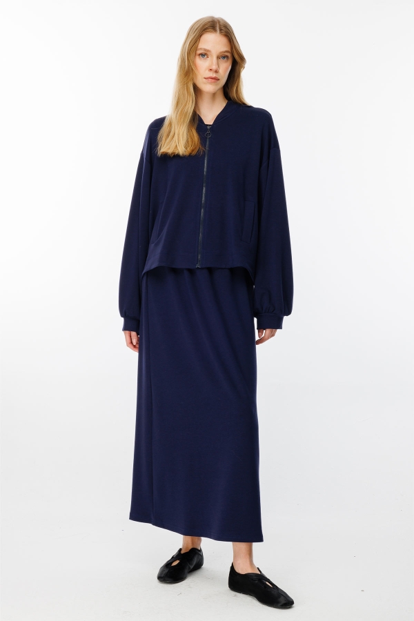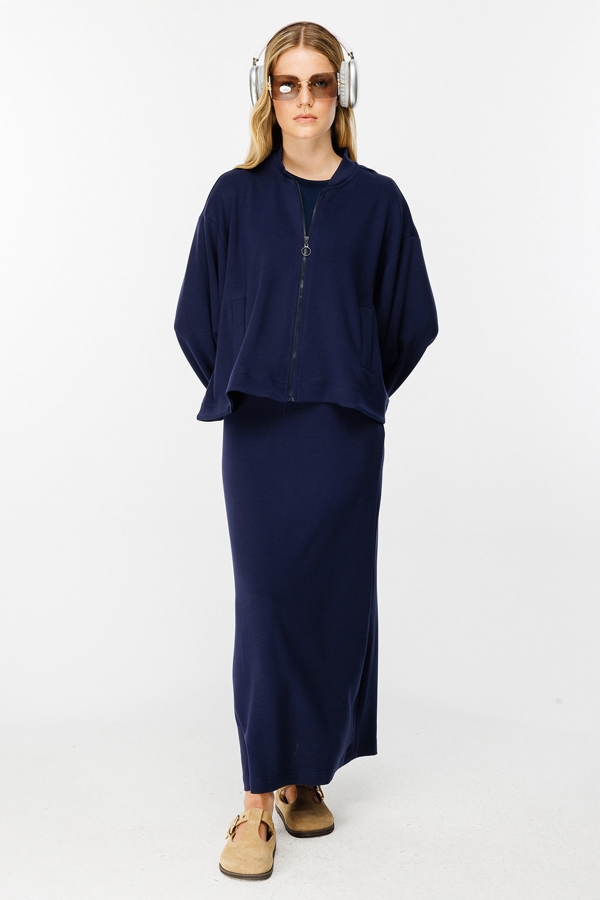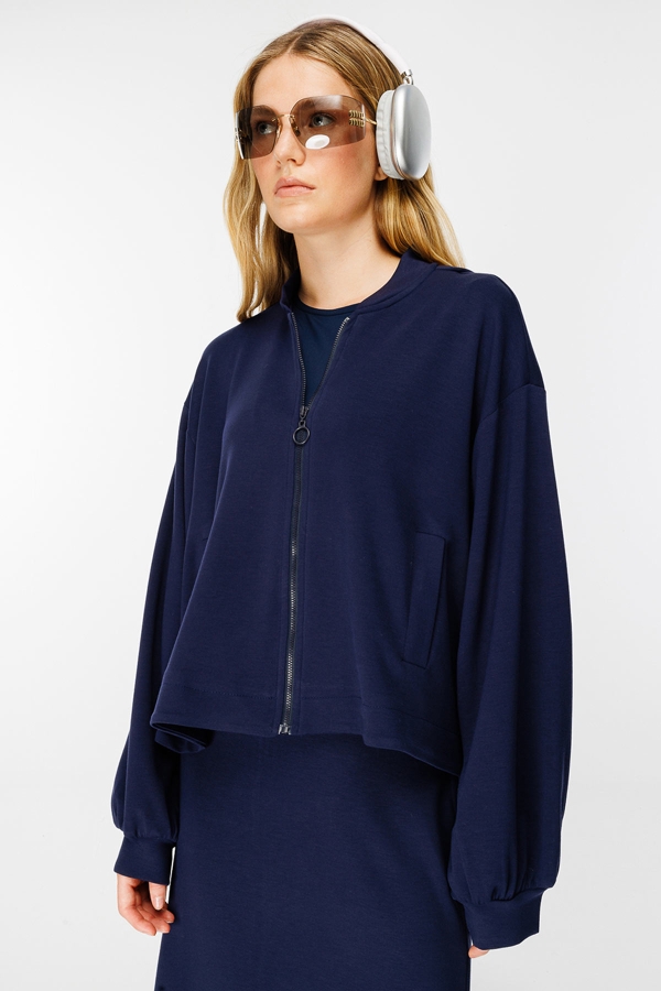 Fermuar Detaylı Bomber Lacivert Ceket