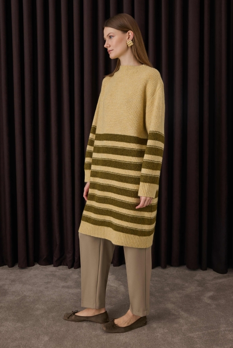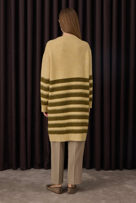 Fine Striped Long Sweater Butter-Seaweed