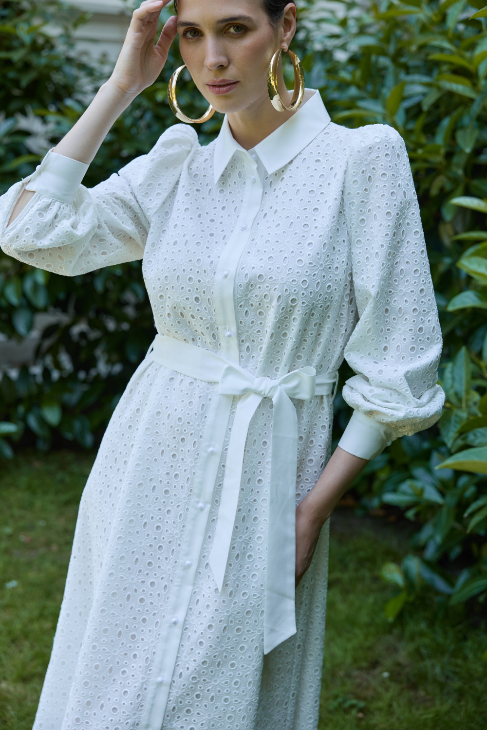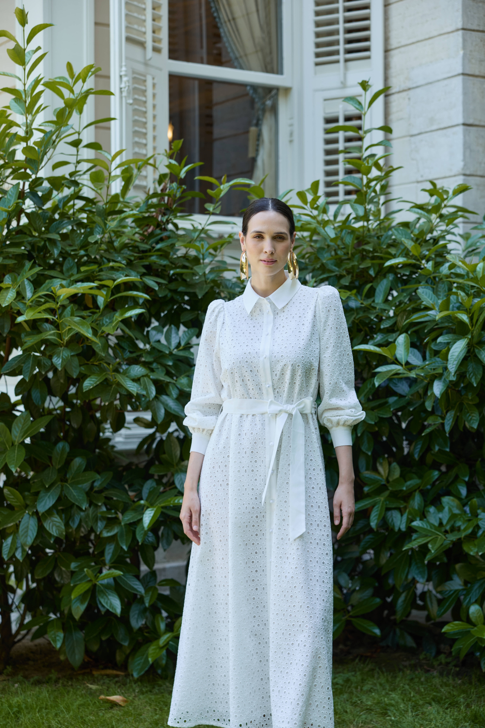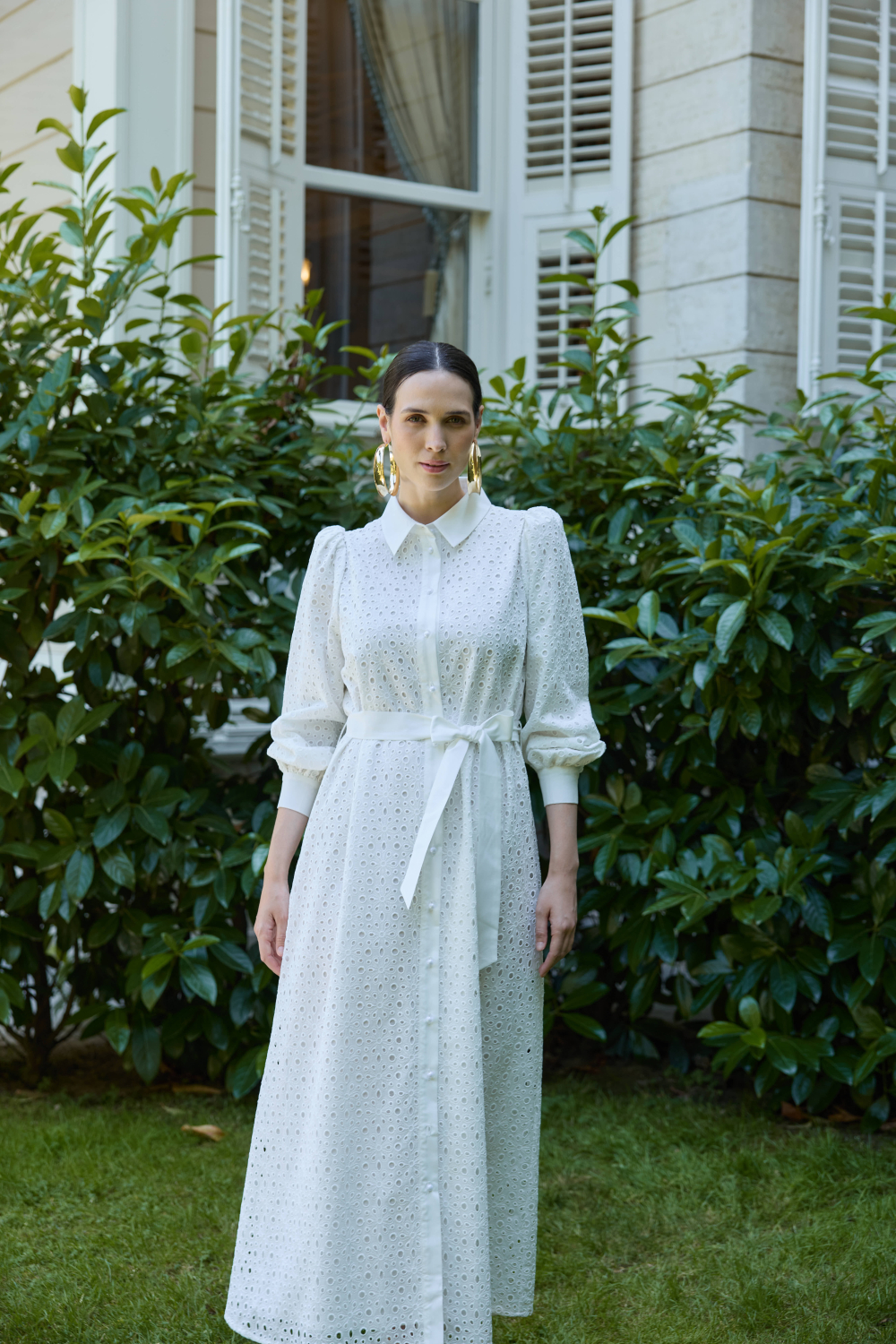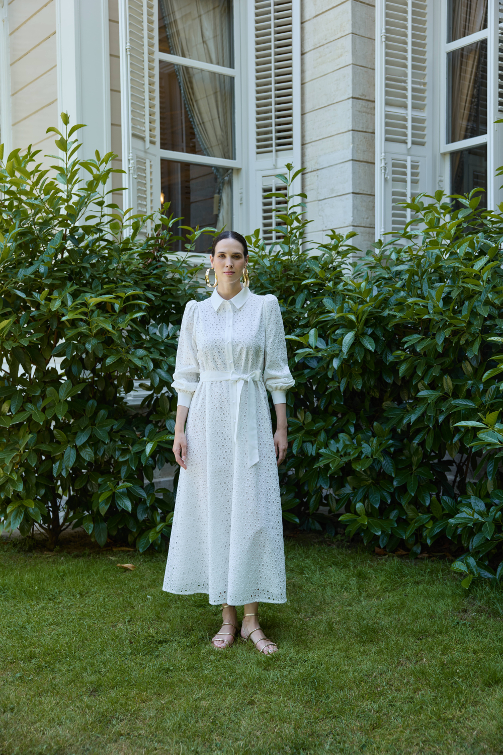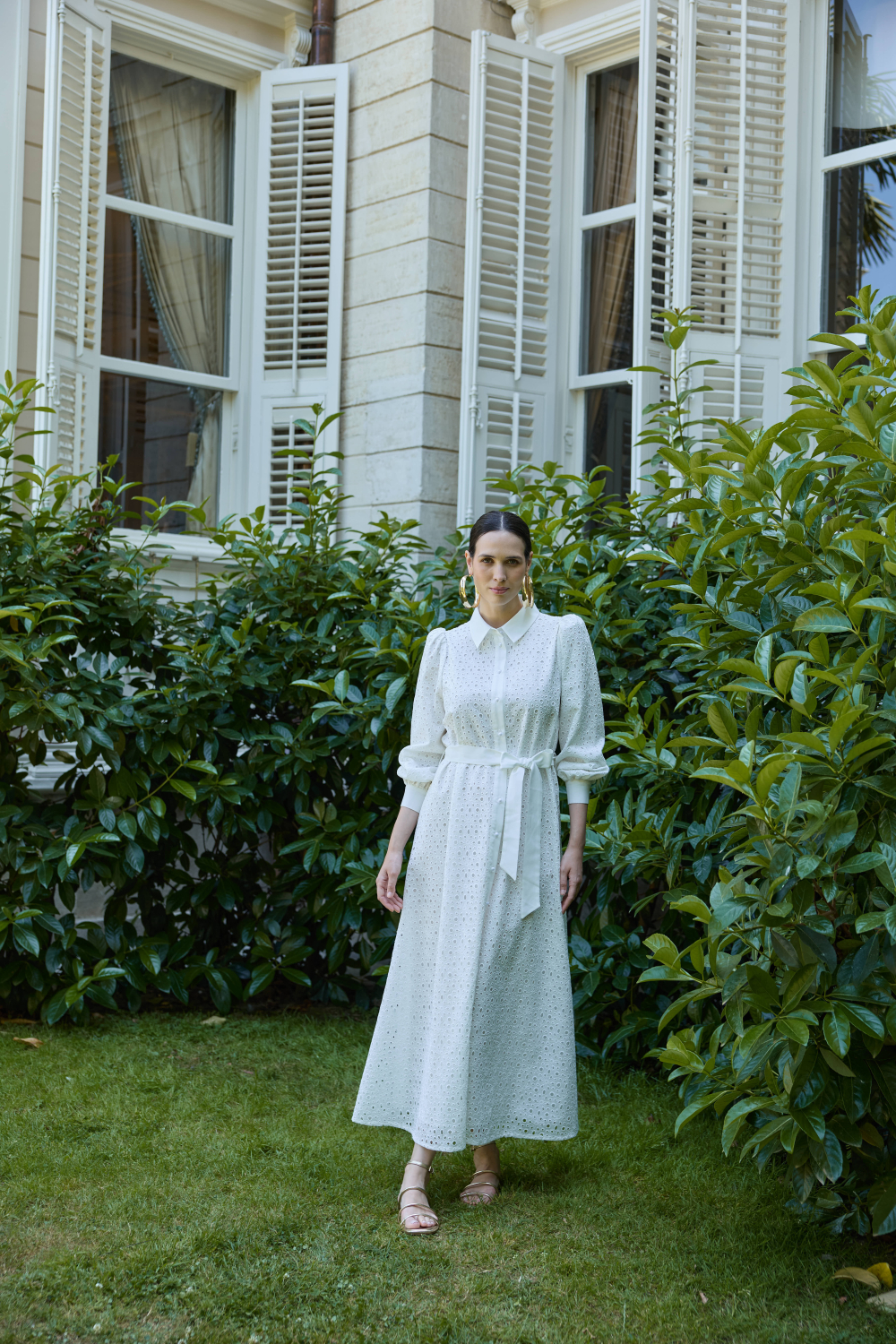 Ivory Asimetrik Yaka Detay Triko Elbise – Krem