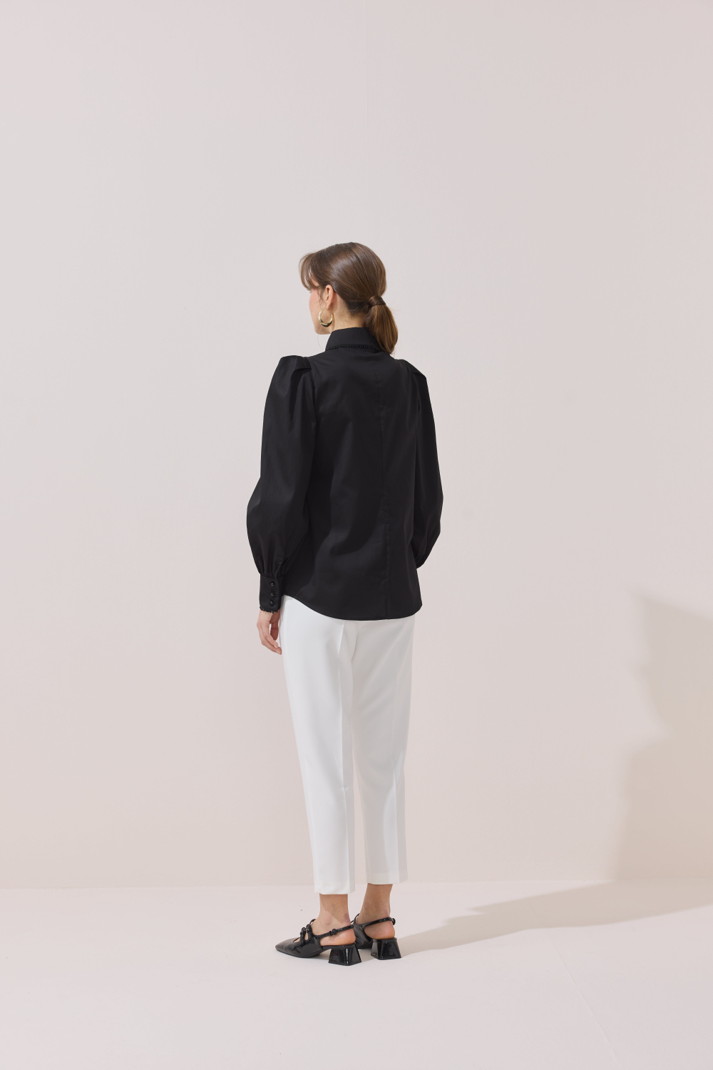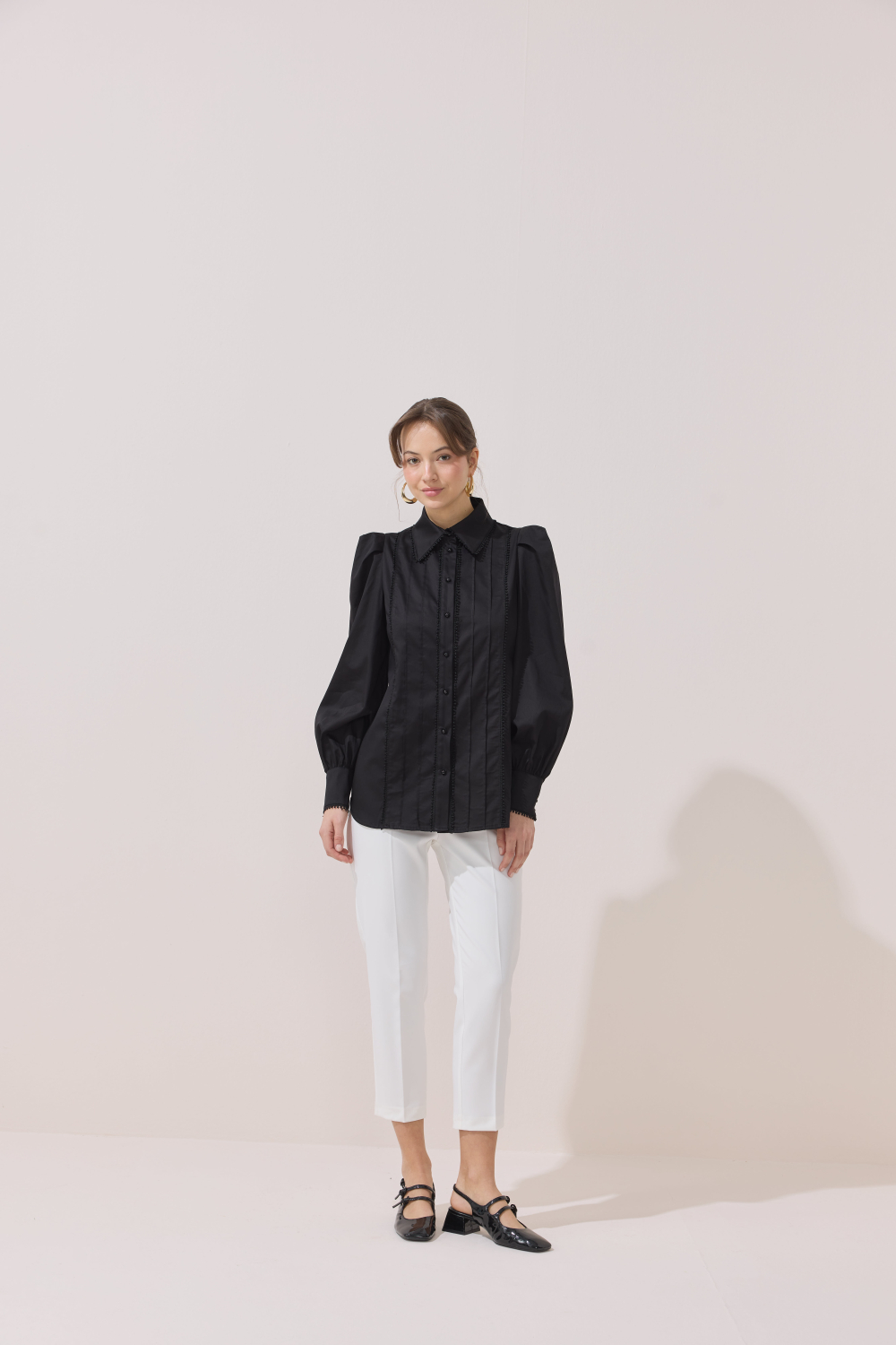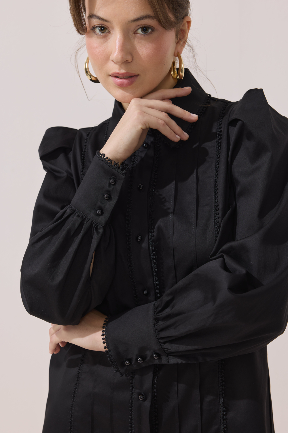 Pleated Collar Detail Tunic – Black