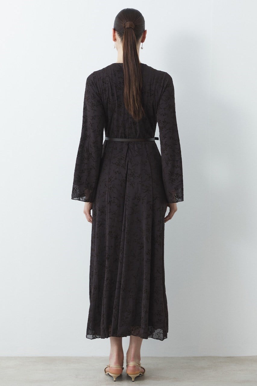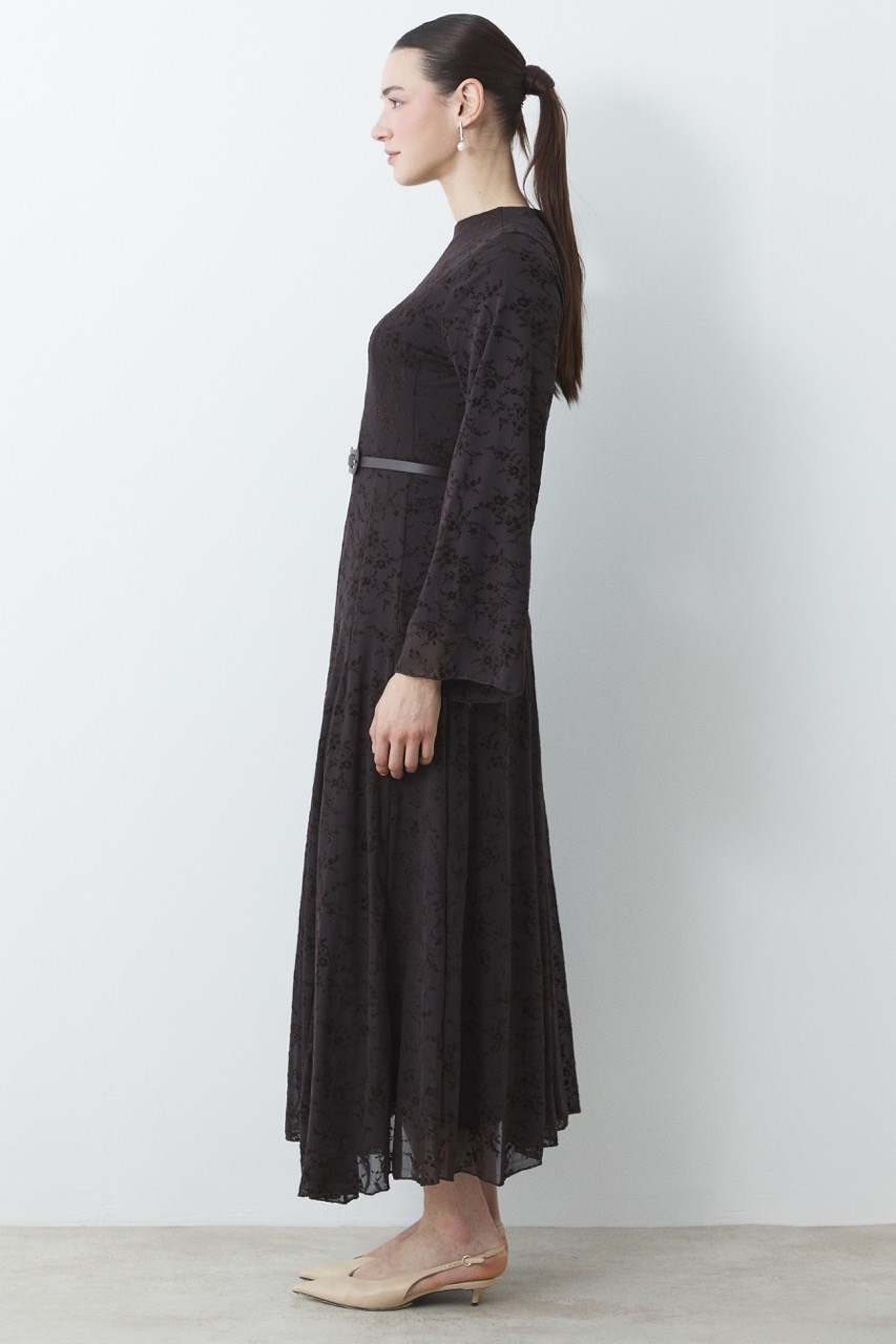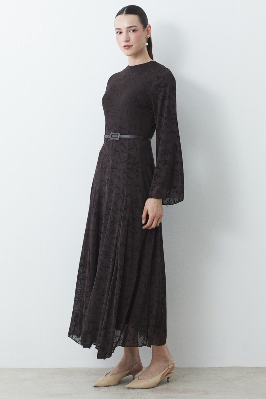 Flock Print Pattern Tulle Dress – Coffee
