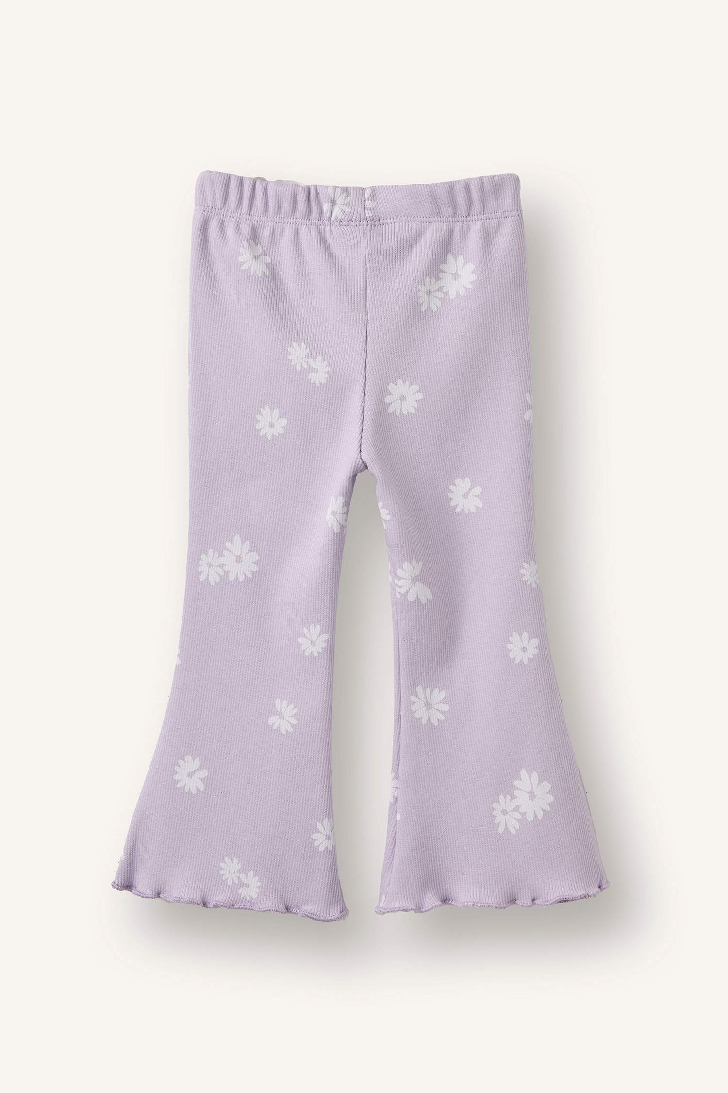 These baby girl leggings feature a floral-patterned ribbed knit fabric, offering comfortable wear thanks to their flexible structure. With their soft texture and stylish design, they add a charming touch to everyday outfits.