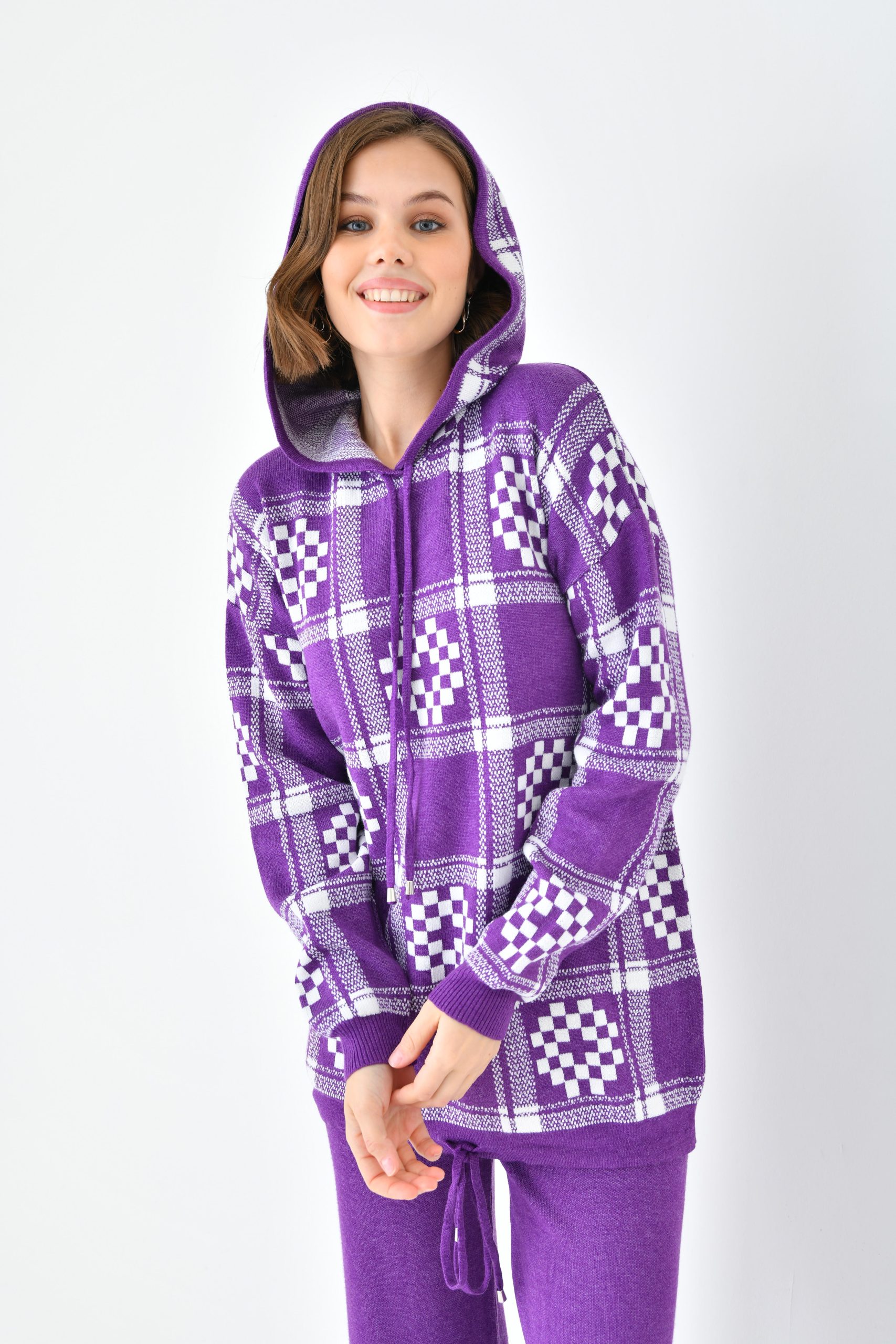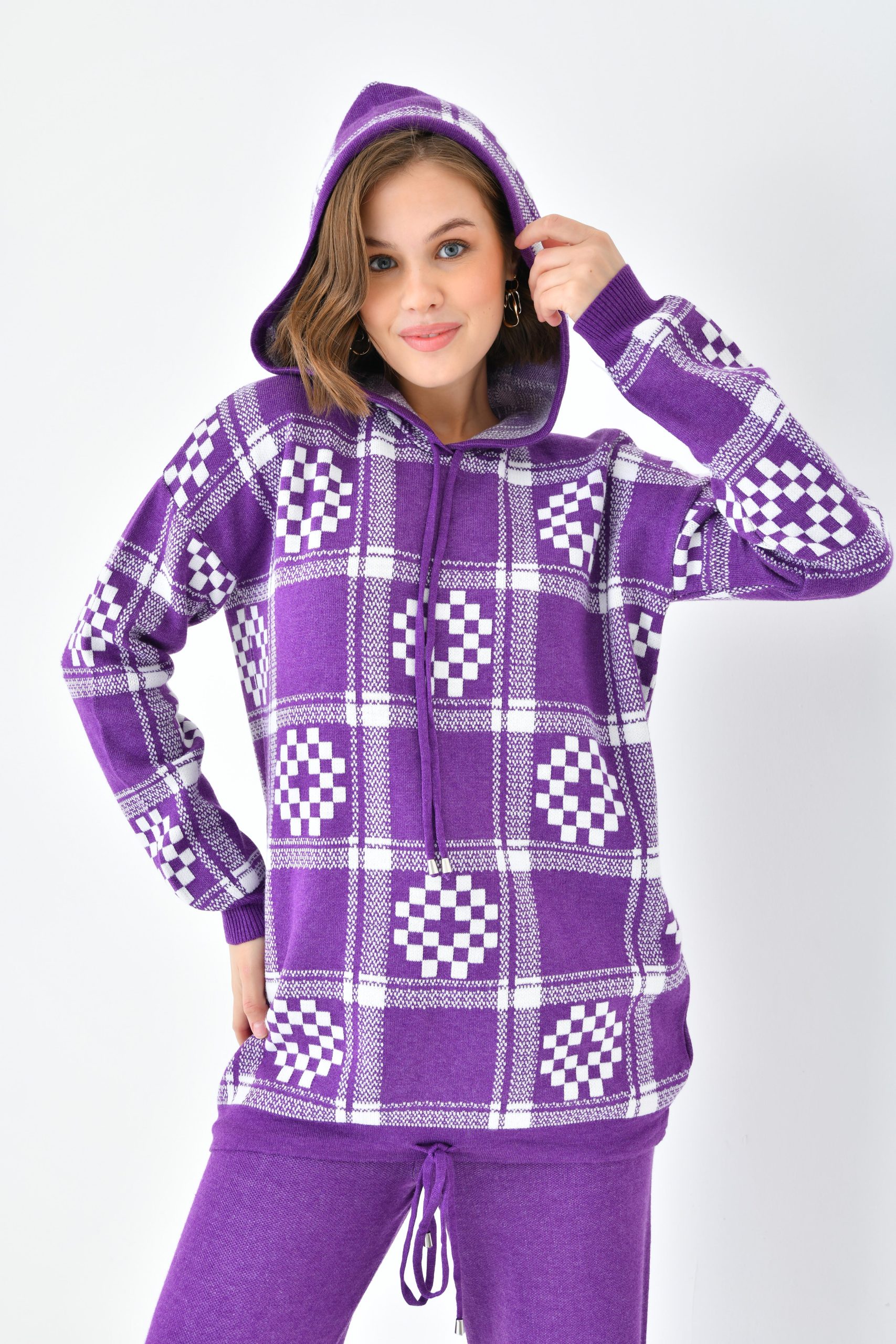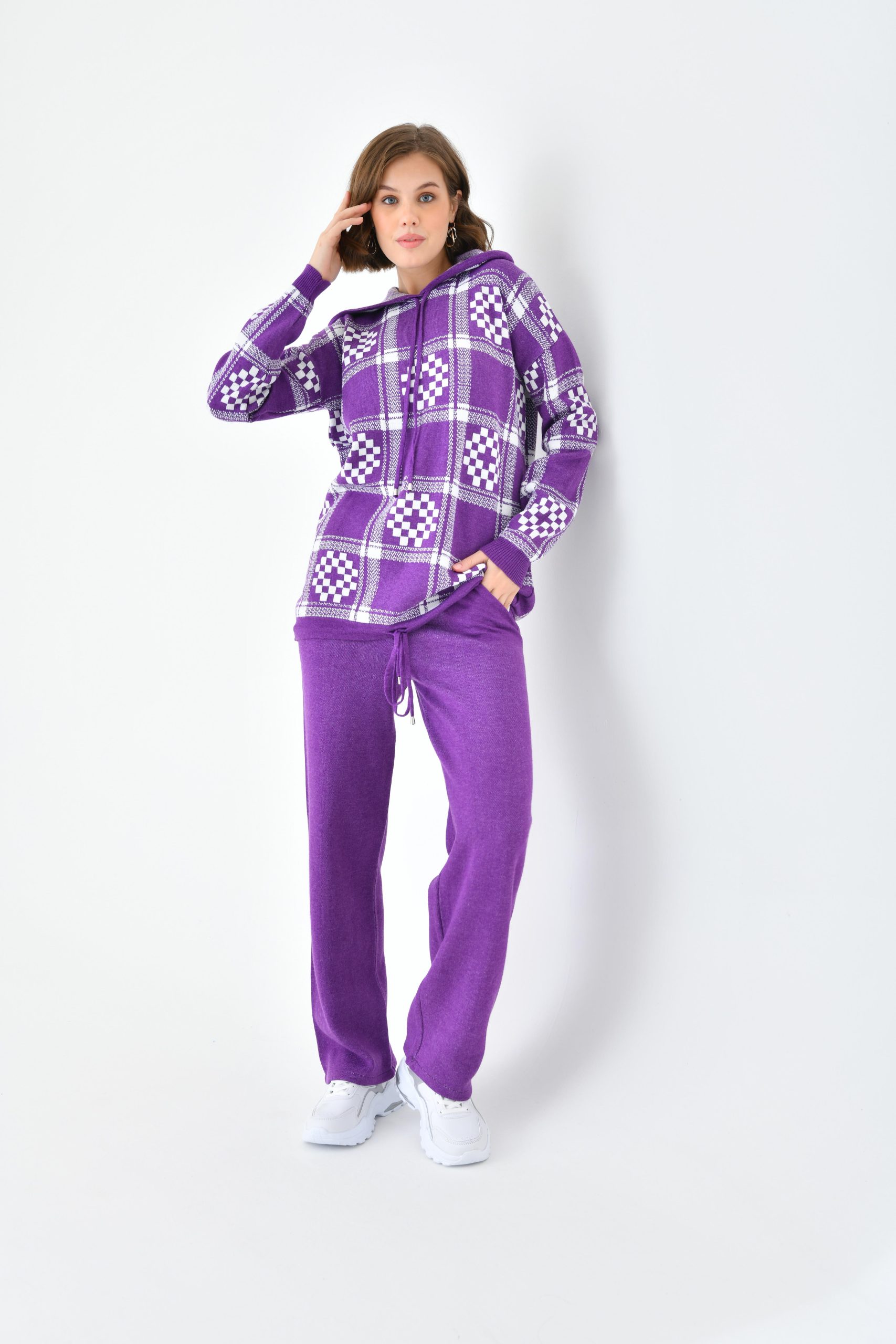 FTZ Women’s Purple Checkered Pattern Two-Piece Suit 20604