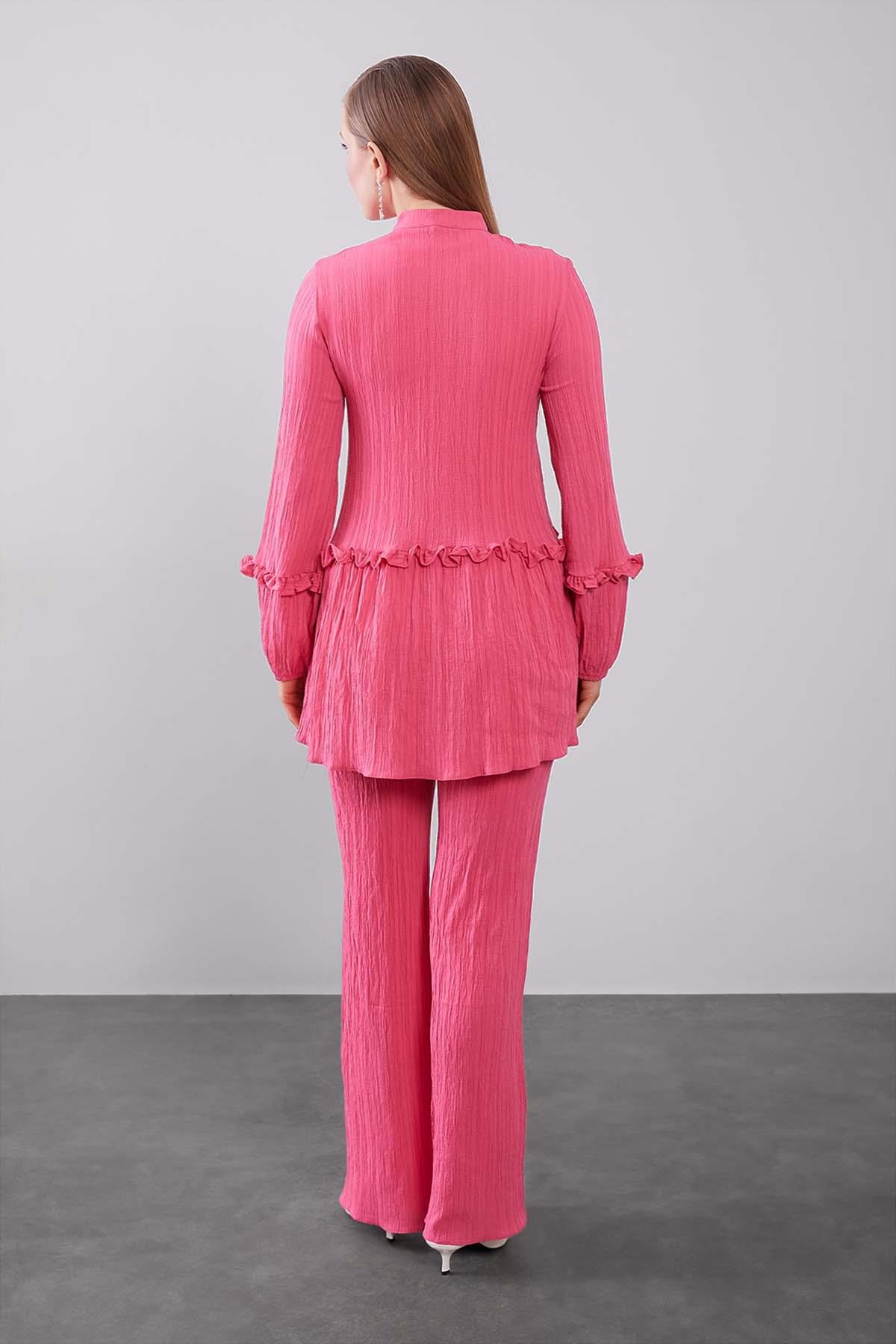 Fuchsia Half Placket Ruffle Detail Two-Piece Set