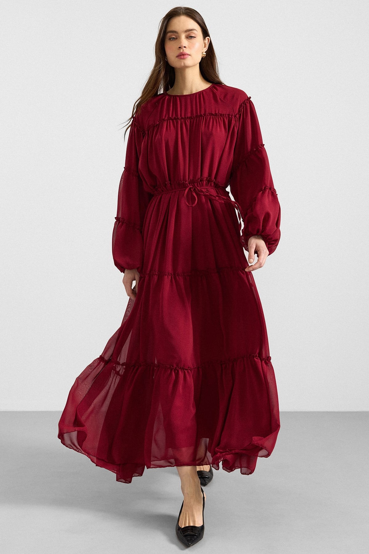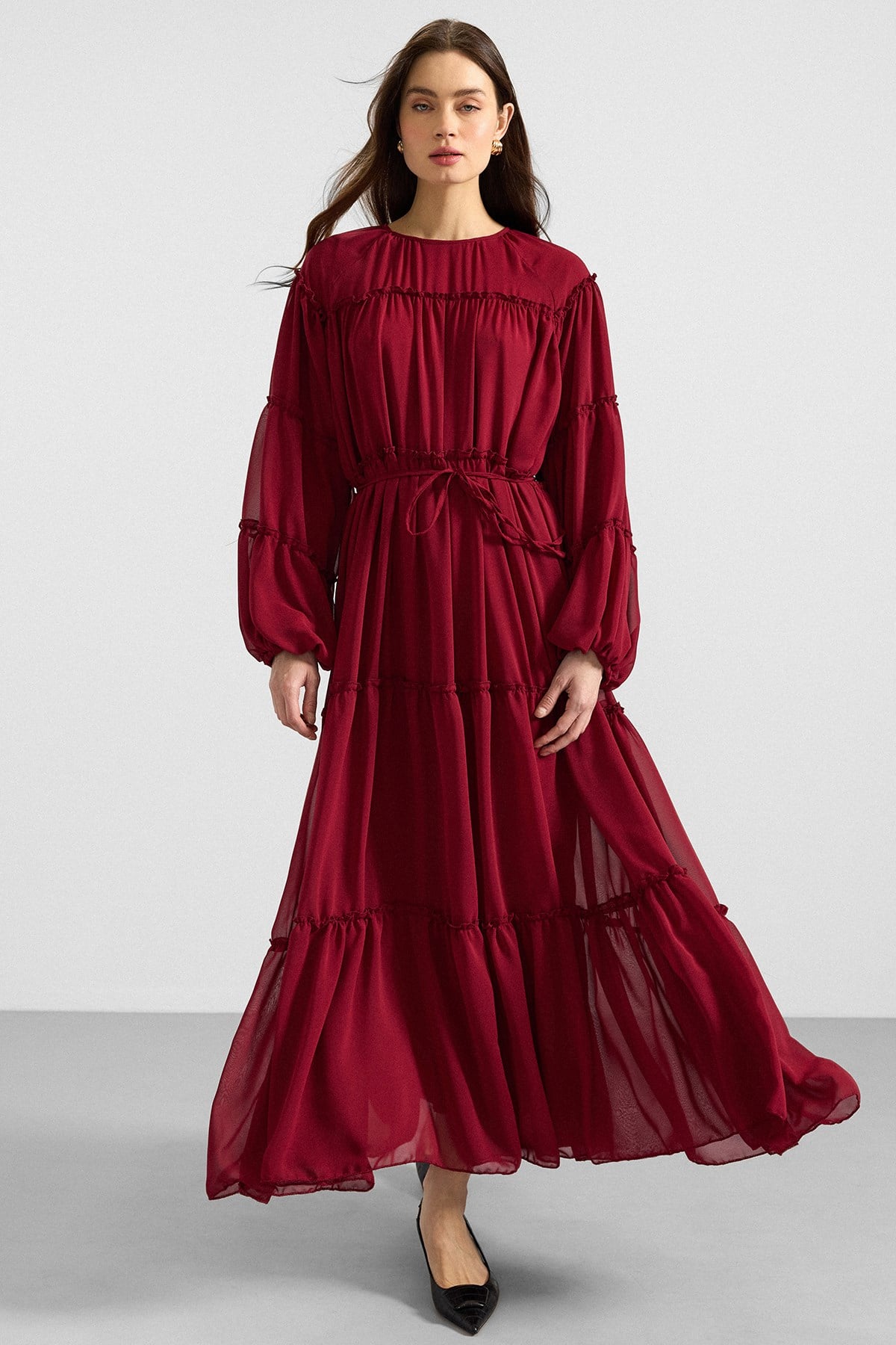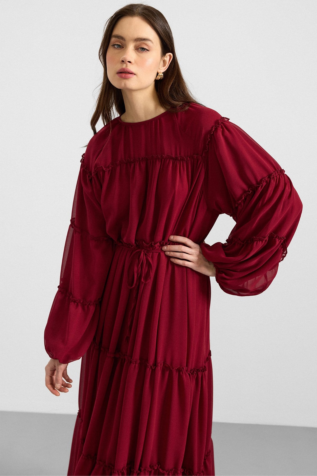 Gathered Detail Chiffon Dress BORDO 9416-E