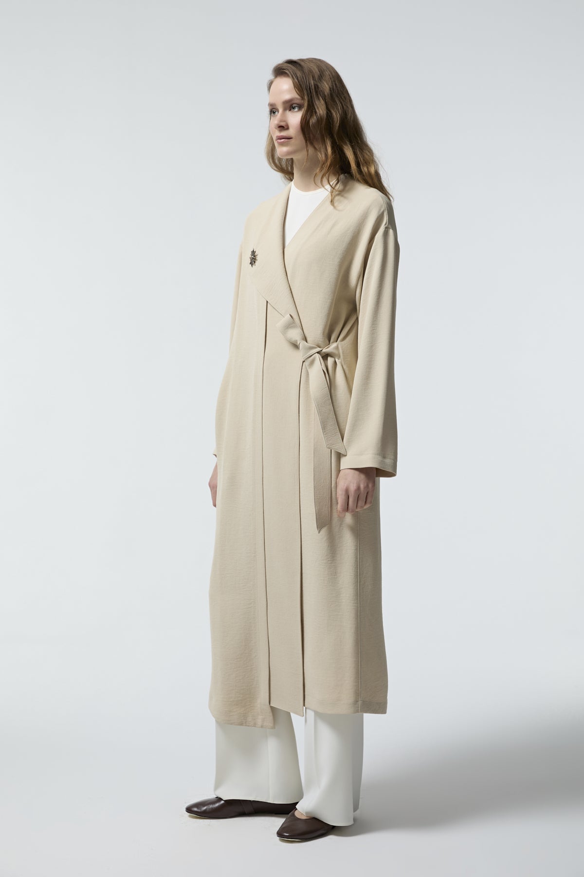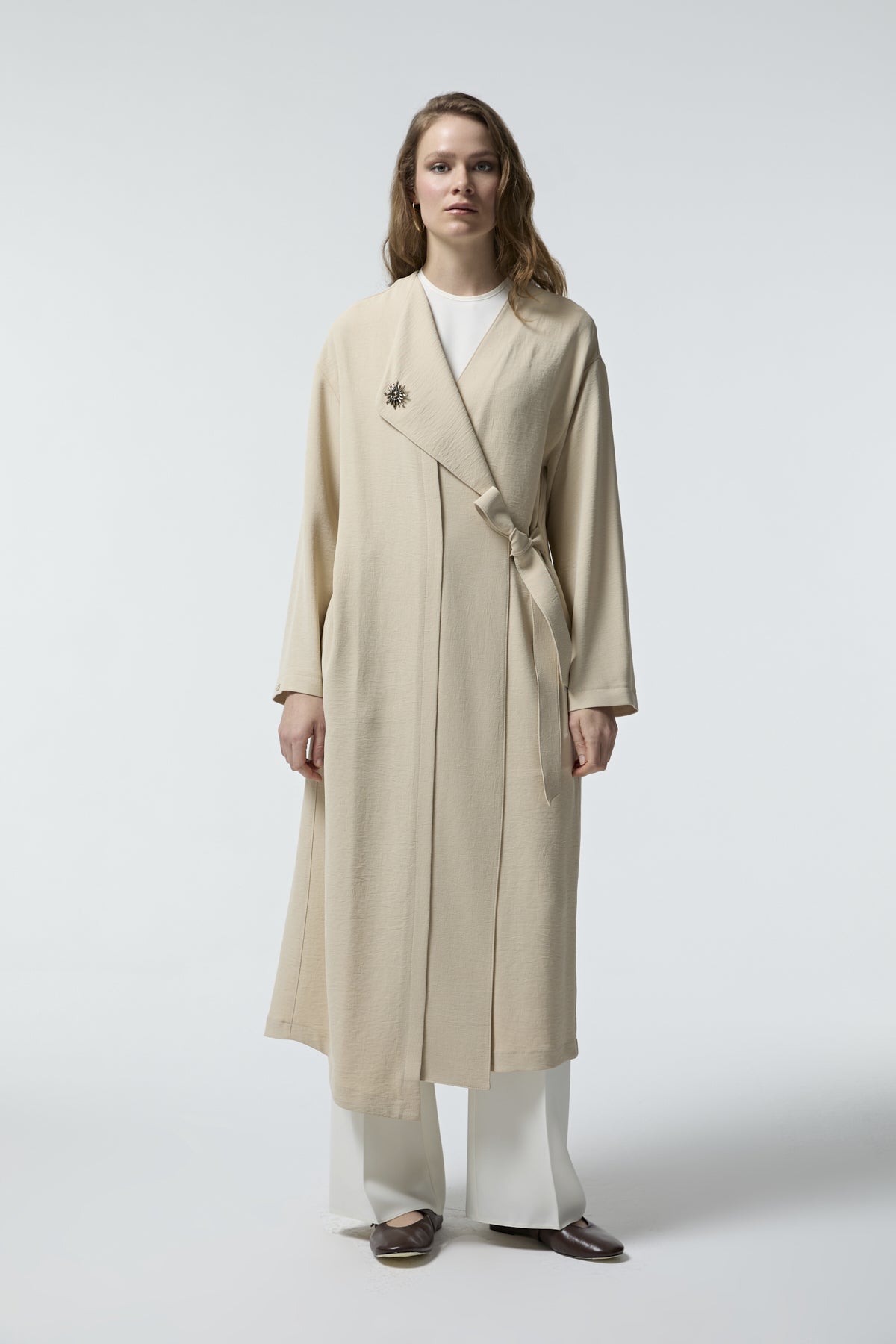 Beige Hidden Belt Detail Poncho