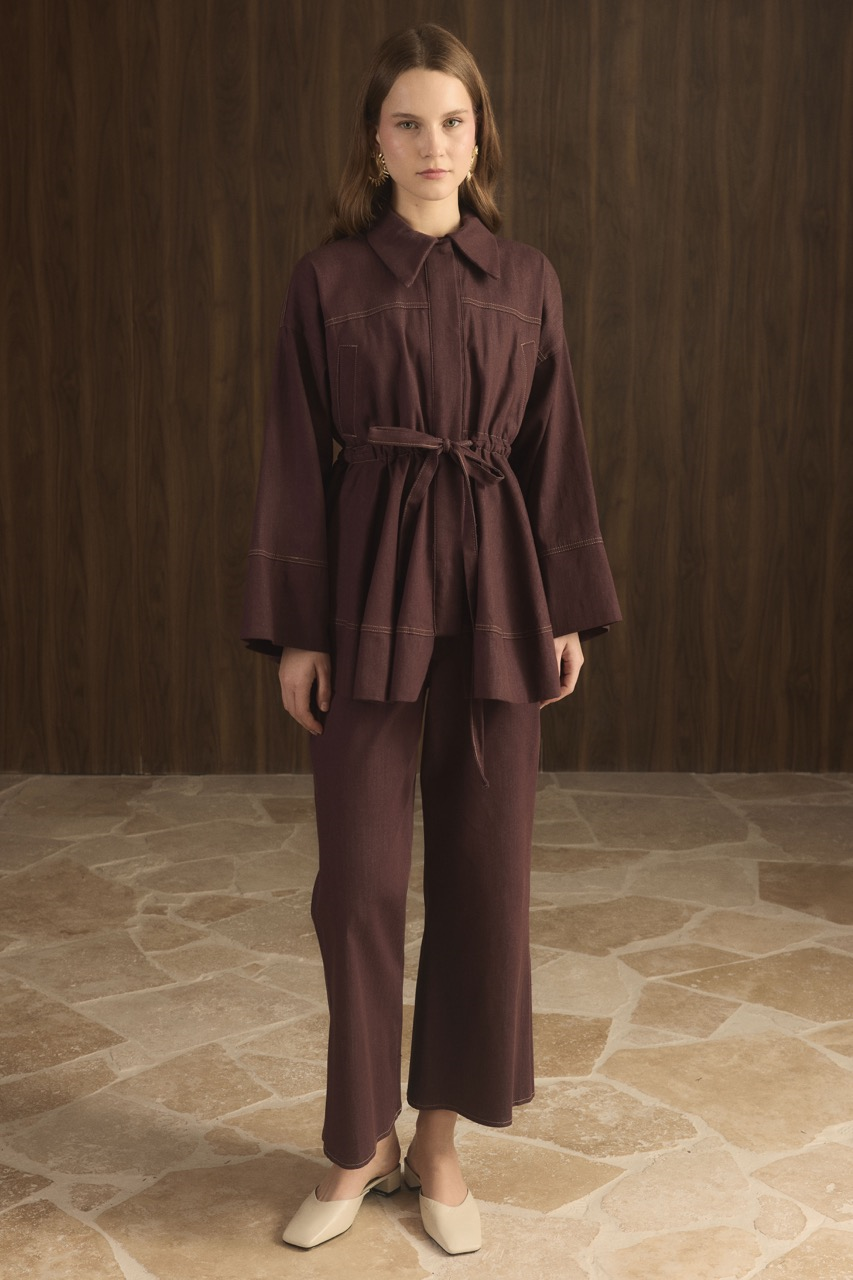 Tags: burgundy, casual wear, comfortable, denim set, high-waist jeans, premium denim, stylish, two-piece outfit, versatile, women's fashion
