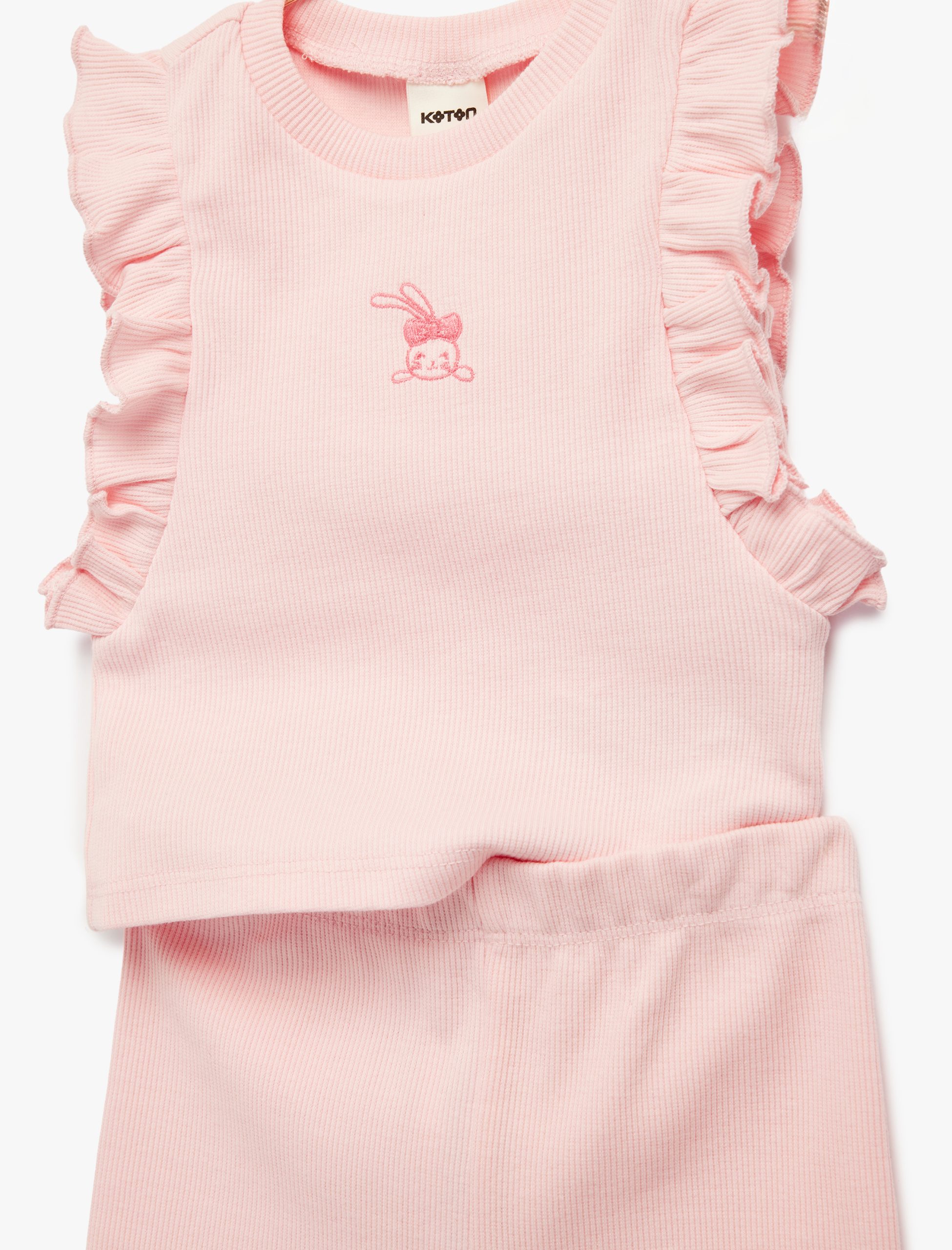 This adorable legging and t-shirt set offers the perfect summer combination for little ones. The sleeveless design and crew neck detail provide freedom of movement, while the cotton composition ensures all-day comfort. The cute rabbit embroidery adds a charming touch.