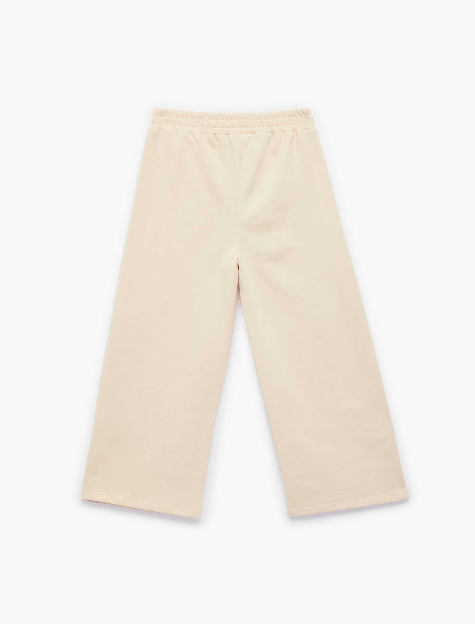Girls’ Bear Detail Sherpa-Lined Cotton Wide Leg Sweatpants