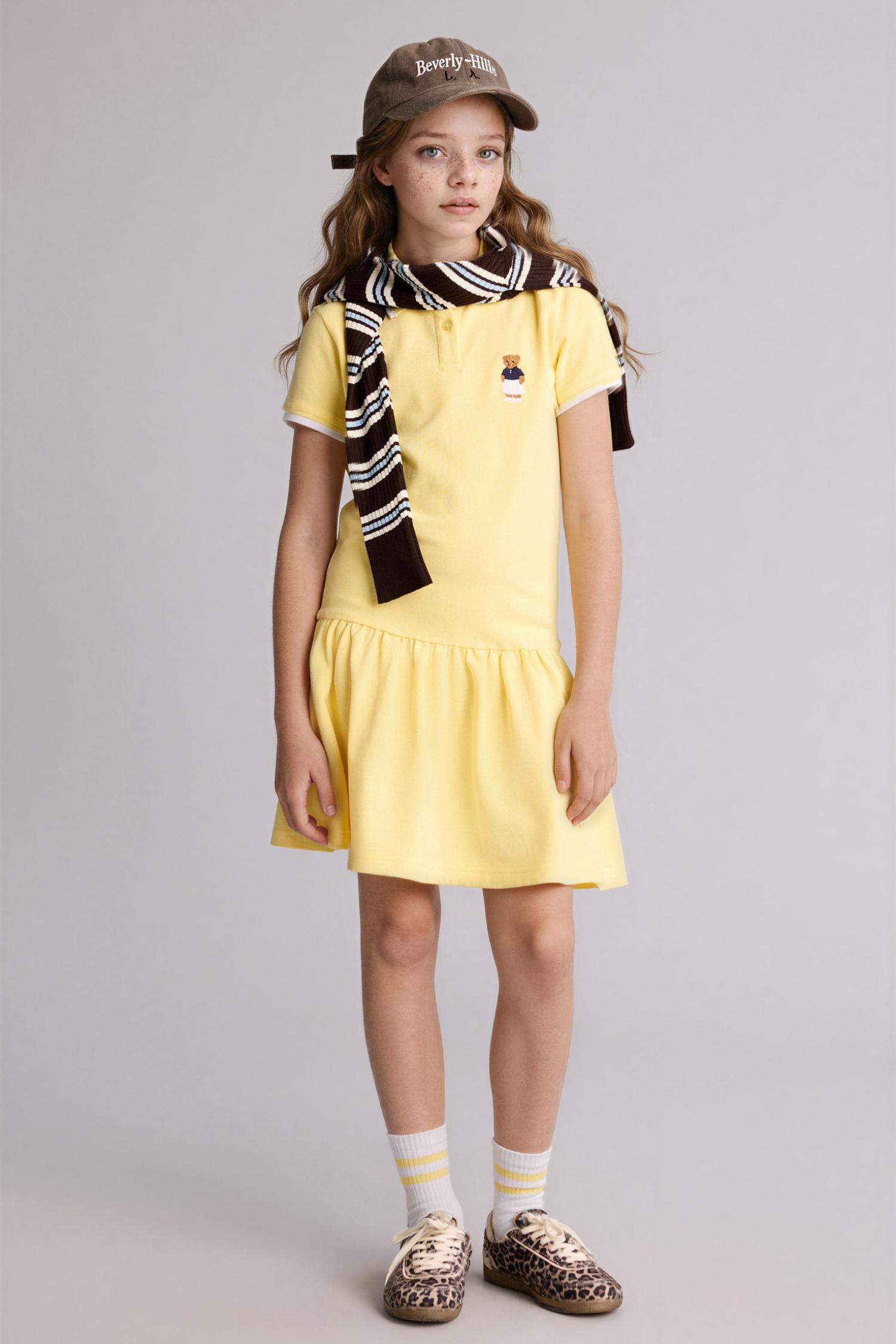 Tags: bear print, casual wear, cotton dress, girls dress, kids fashion, short sleeve, trendy clothing, yellow dress