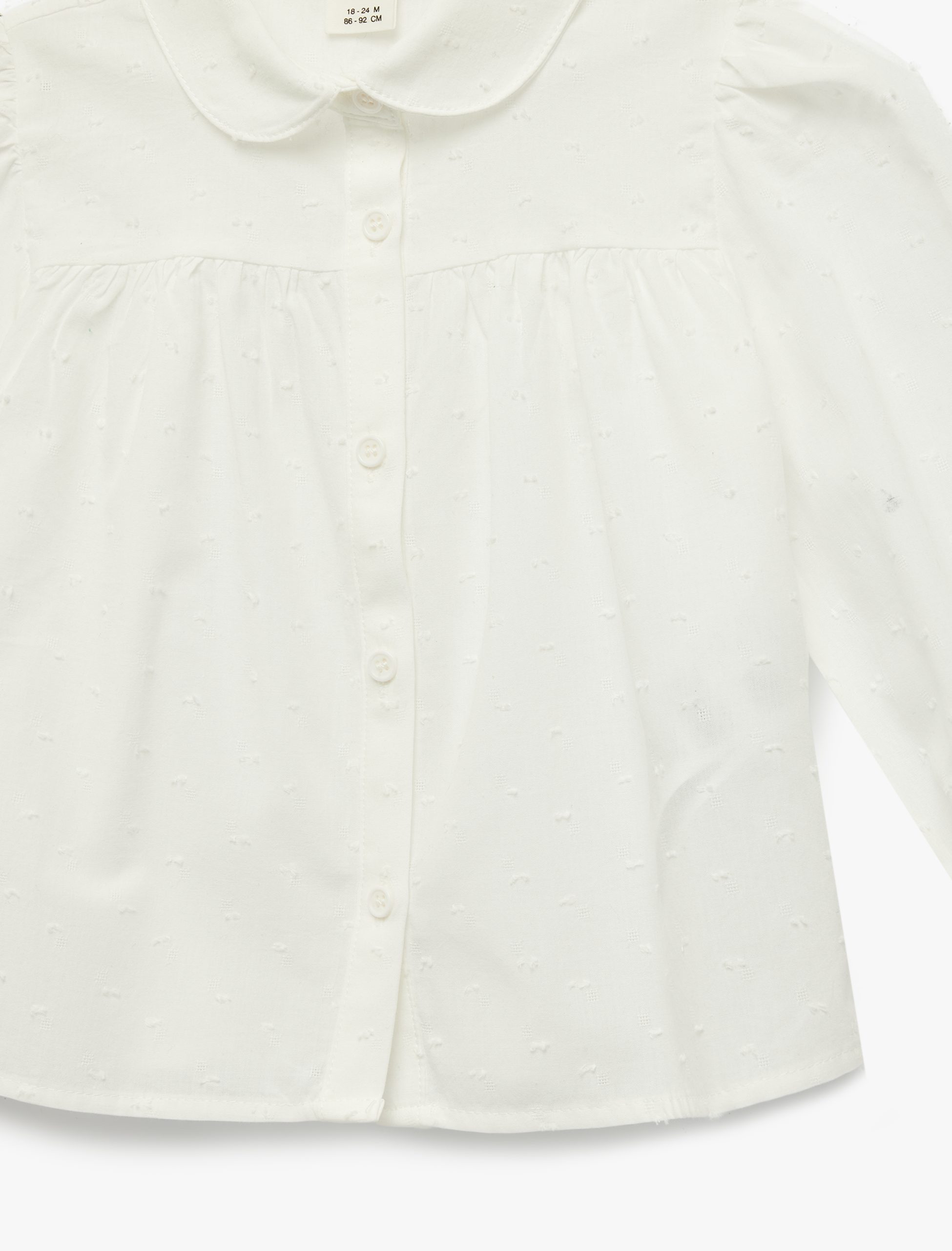Specially designed for babies, this long-sleeve shirt offers comfort with its cotton texture. Its textured structure provides a stylish appearance. The button-down front adds convenience and a charming touch. Suitable for daily wear, this shirt is poised to become a favorite piece in your little one’s wardrobe.