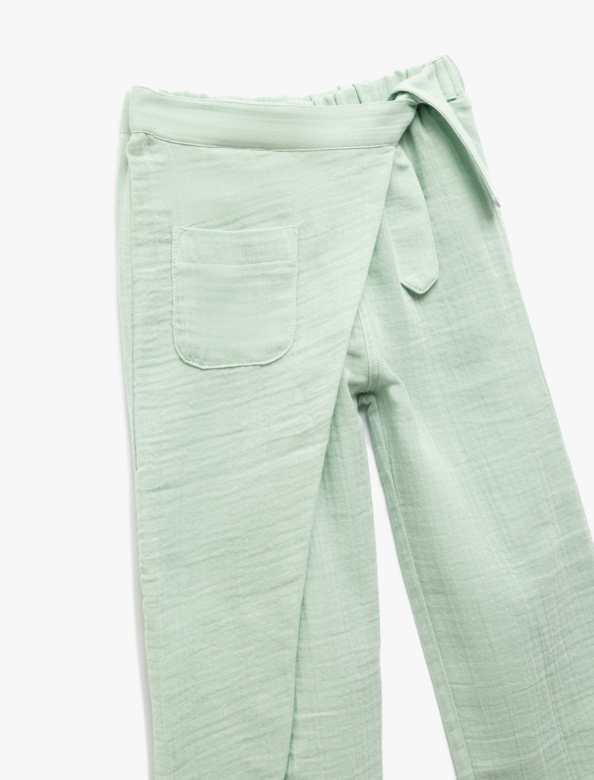 Girl’s Cotton Muslin Pants with Pocket Detail and Tie Waist