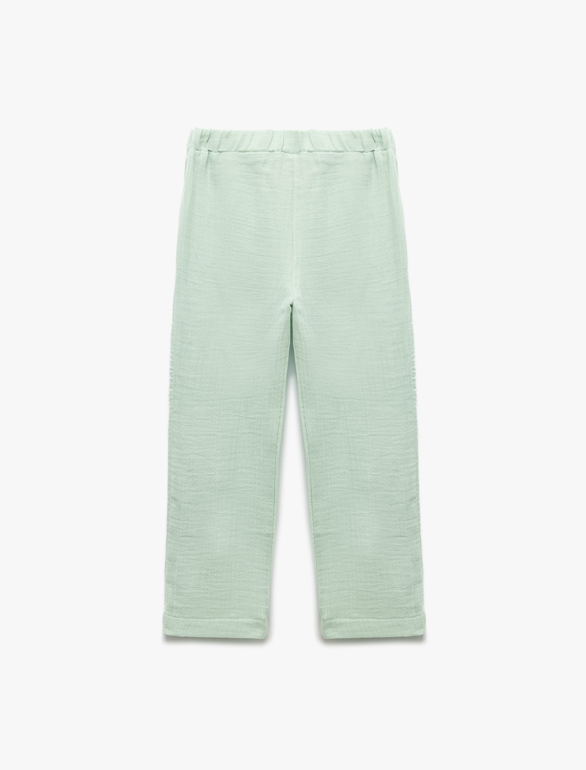 Muslin pants offer an ideal choice for little ones with their soft texture. The tie-waist design provides comfort while allowing babies to move freely. The pocket detail adds an elegant touch to the pants while offering a style suitable for daily use.