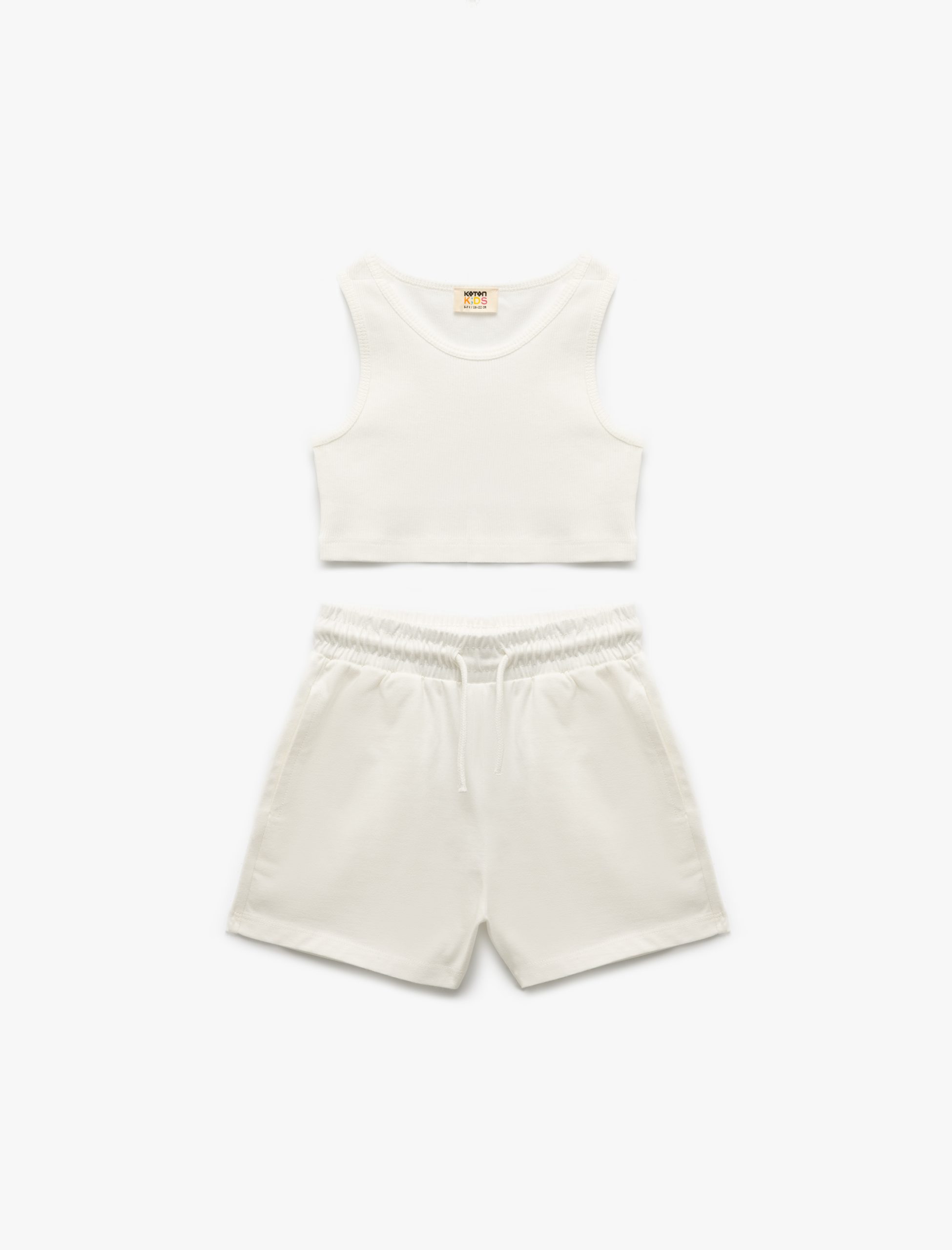 Girls’ Cotton Sleeveless Crop Top and Tie-Waist Shorts Set
