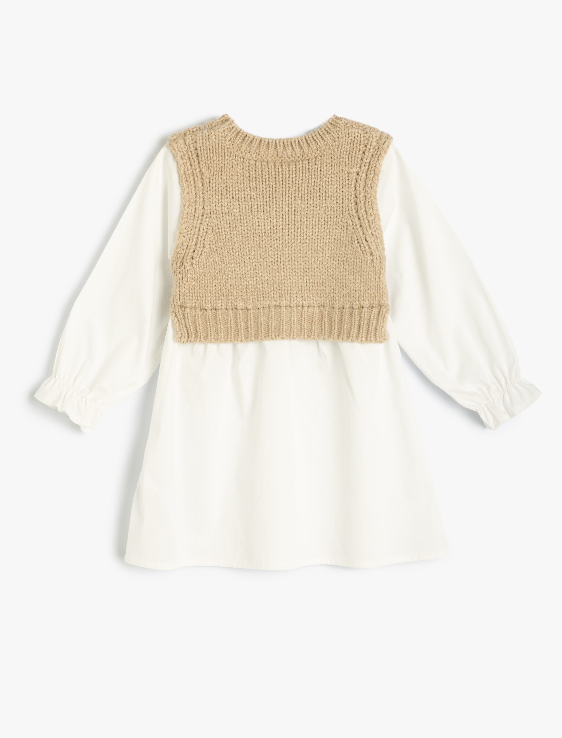 Girl’s Dress with Long Sleeves and Sweater Detail Round Neck