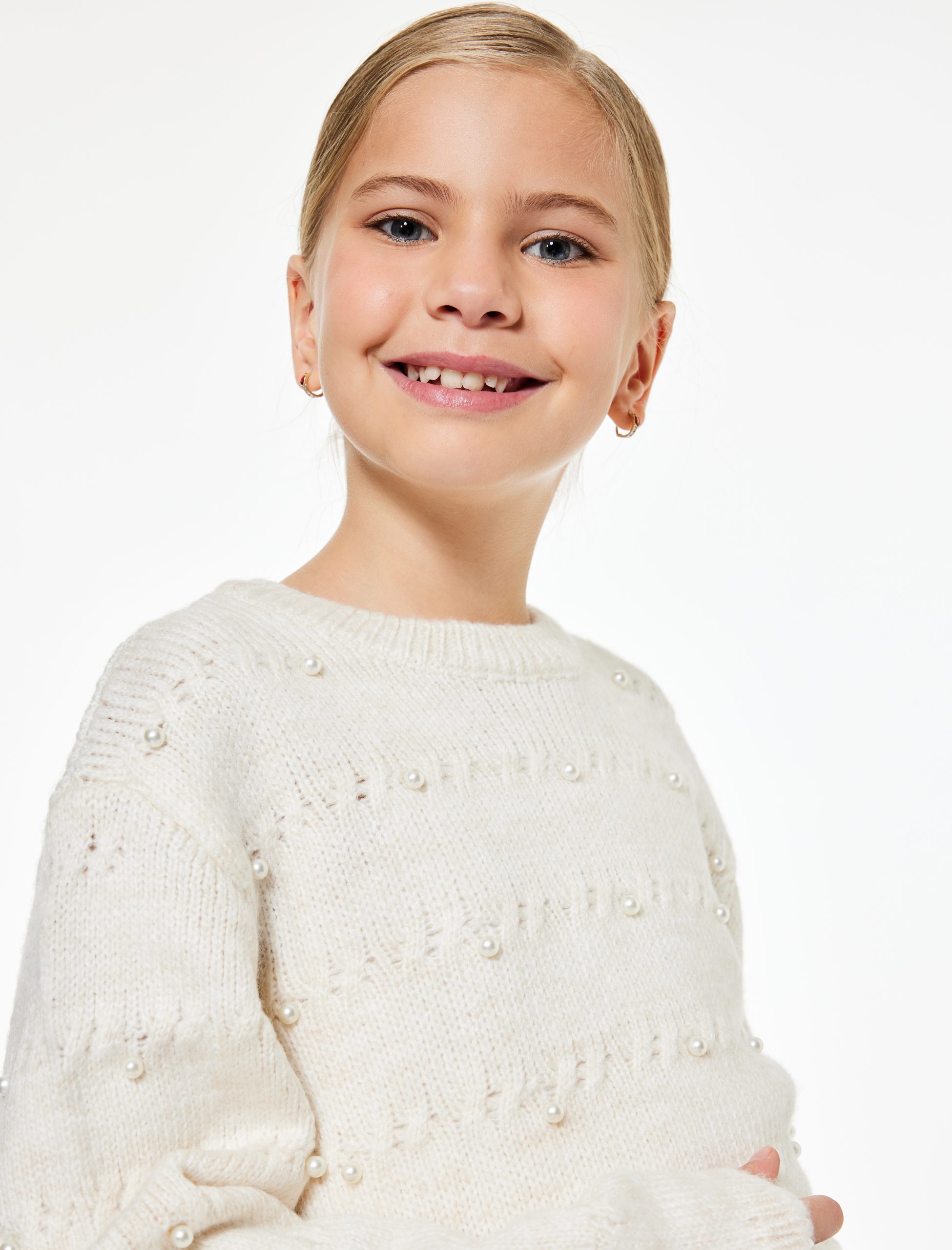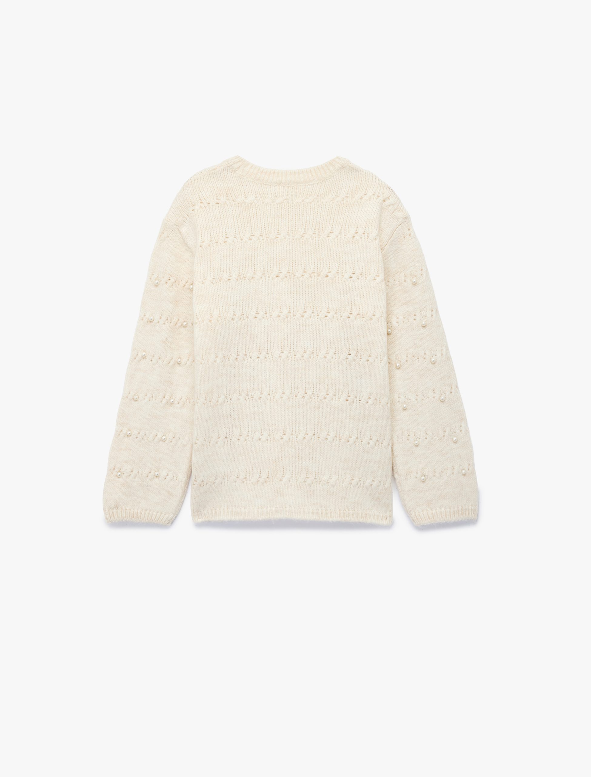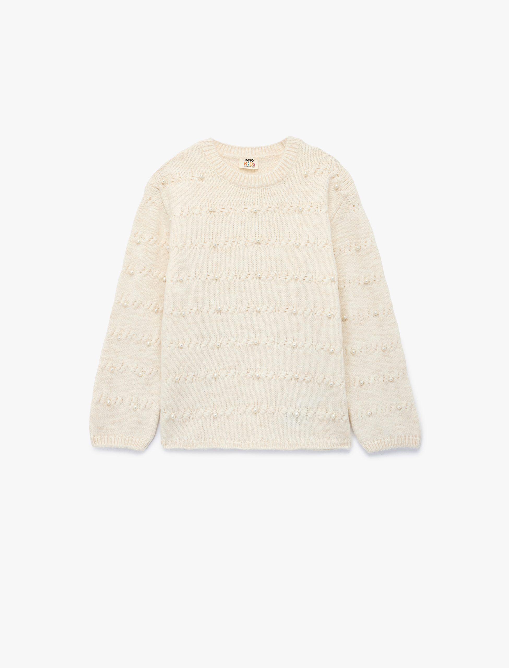 Girl’s Long Sleeve Crew Neck Bead Detail Knit Sweater