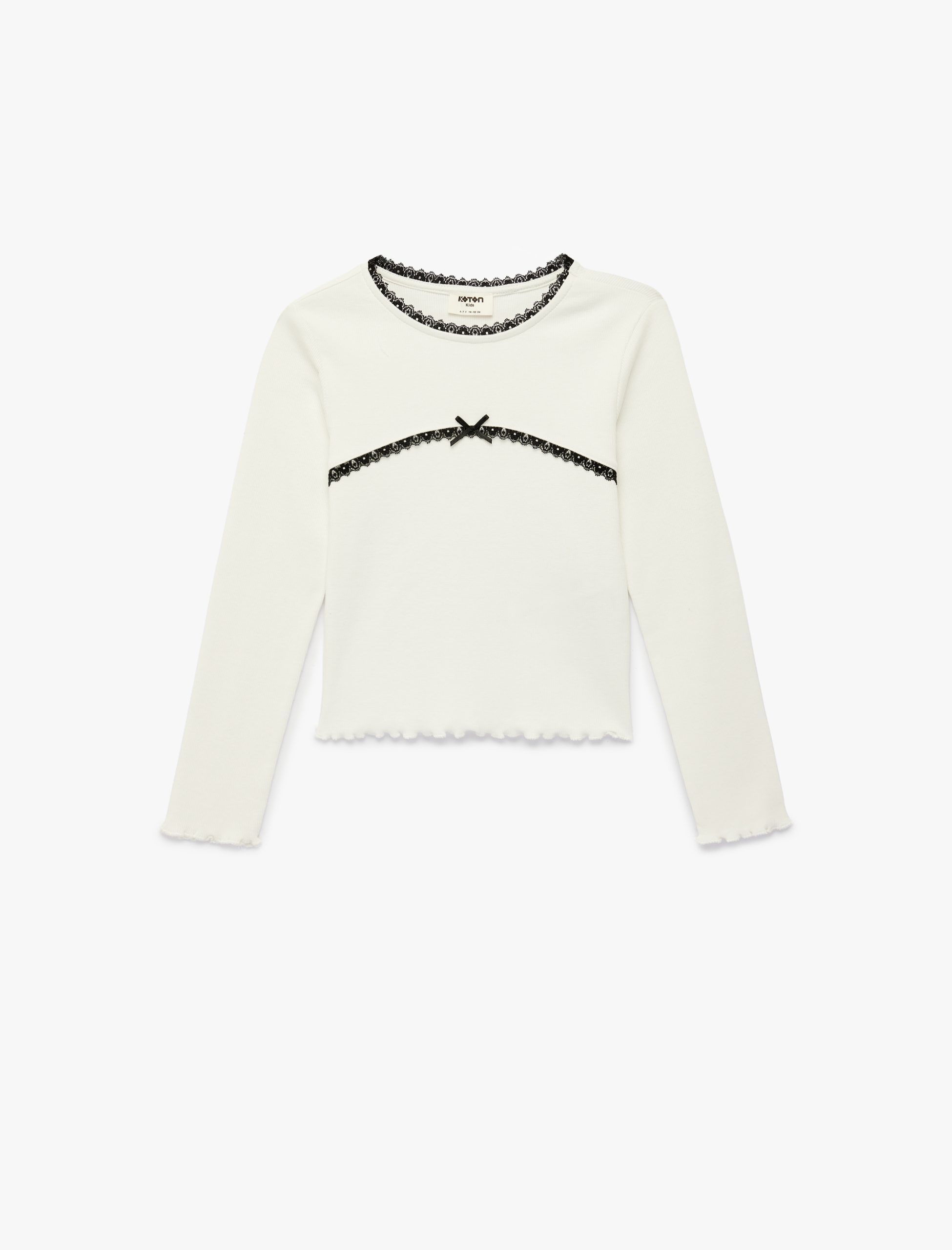 Girls’ Long Sleeve Lace and Bow Detail Cotton Crew Neck T-Shirt