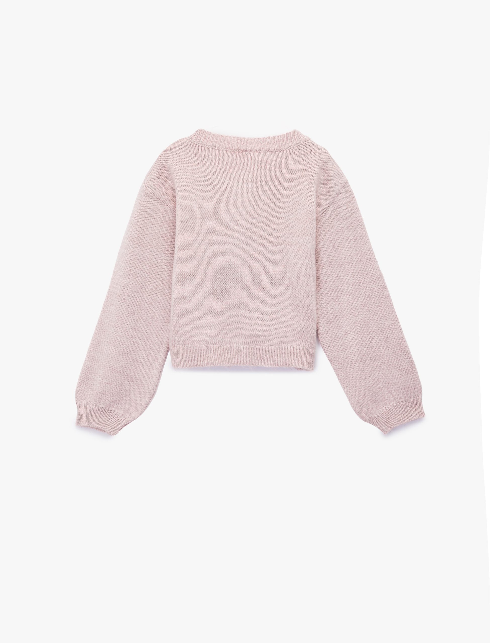 Girl’s Long-Sleeve Round Neck Embroidered Floral Detail Knit Cardigan