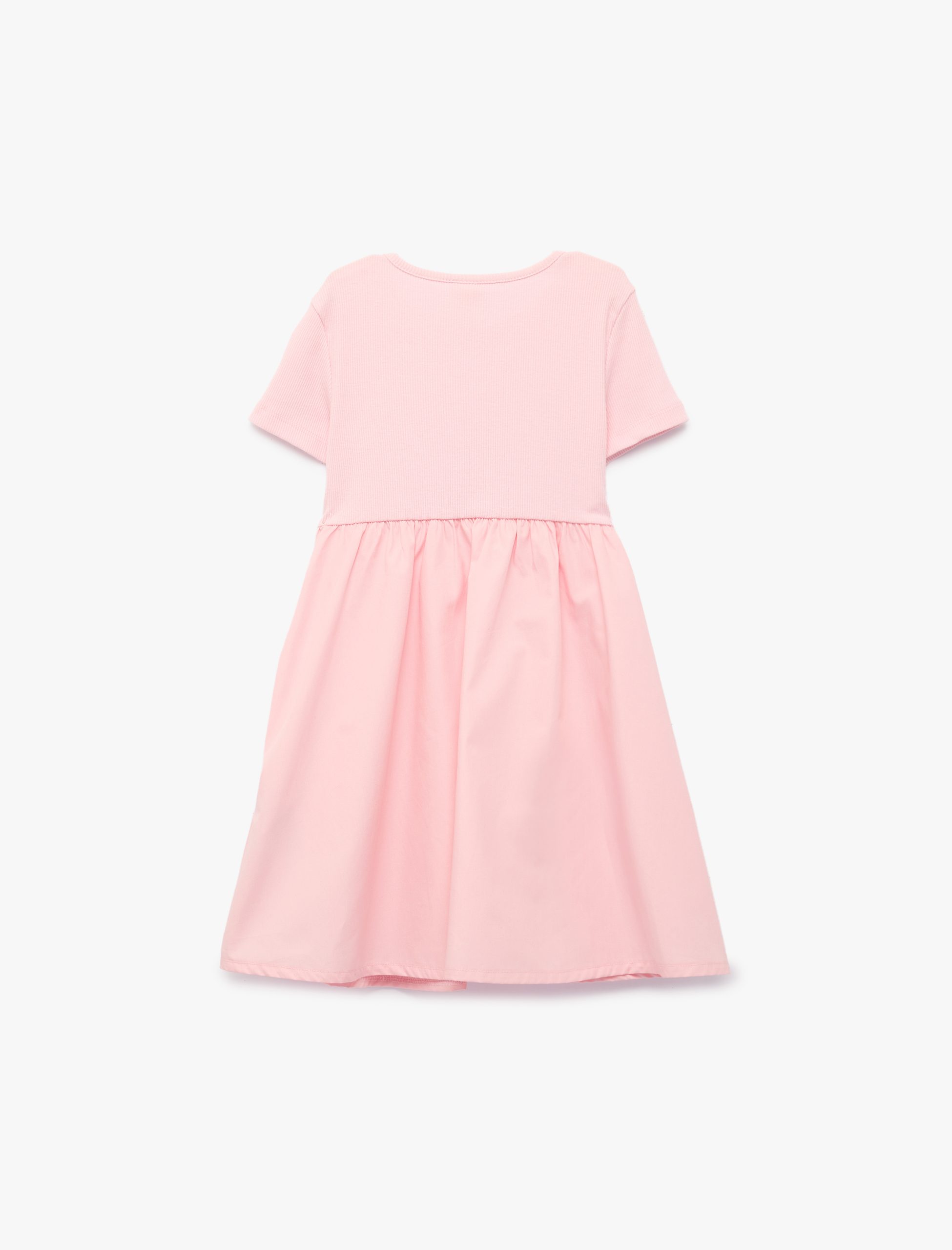 This short sleeve dress, made from cotton jersey fabric, offers a perfect choice for baby girls. The scoop neck design and adorable bow detail create an energetic and sweet appearance. Ideal for daily activities, this dress prioritizes little ones’ comfort.