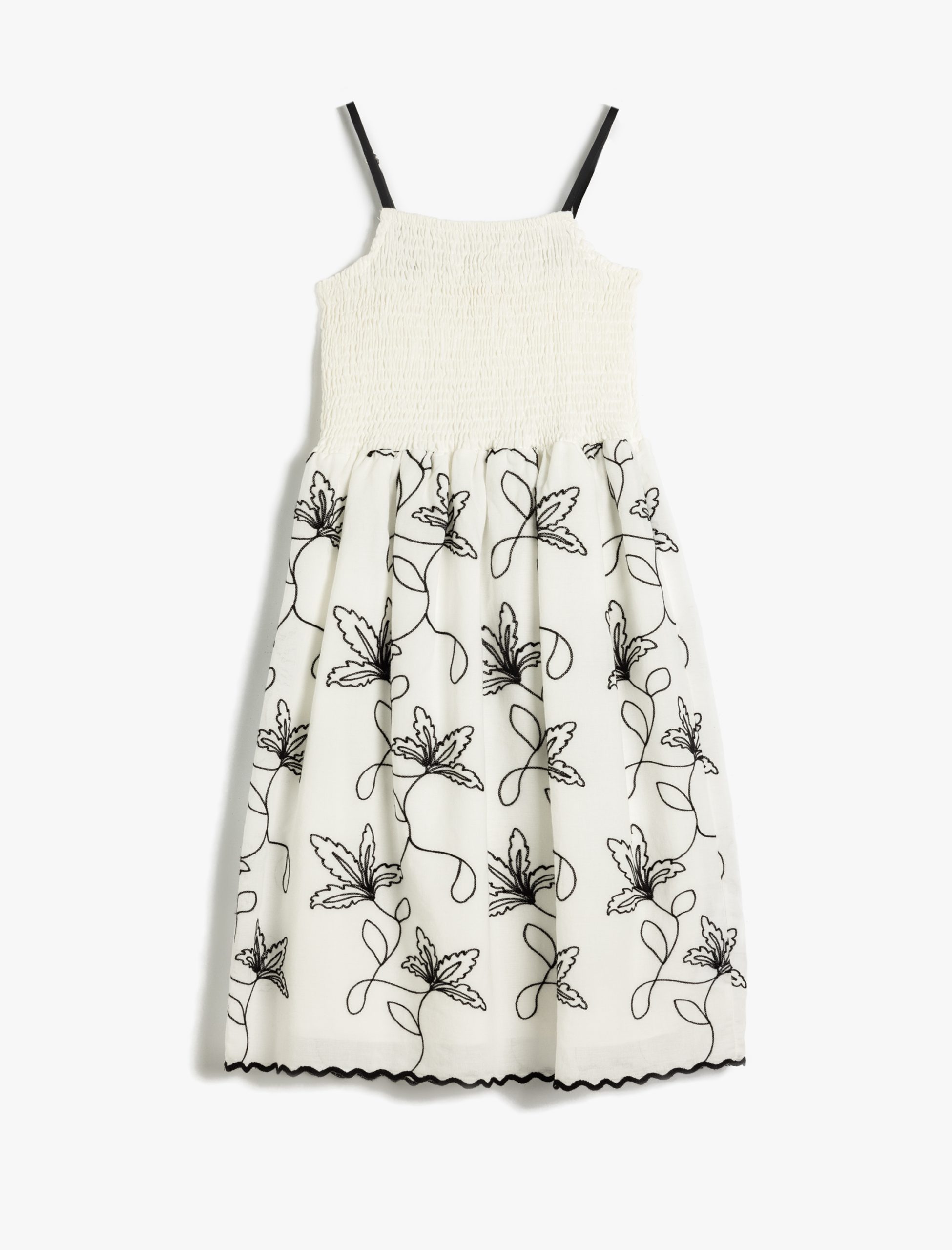 Discover the essential summer piece with Koton’s girl’s dress collection. Achieve a vibrant look with this strappy, frilly, floral-embroidered cotton midi dress.