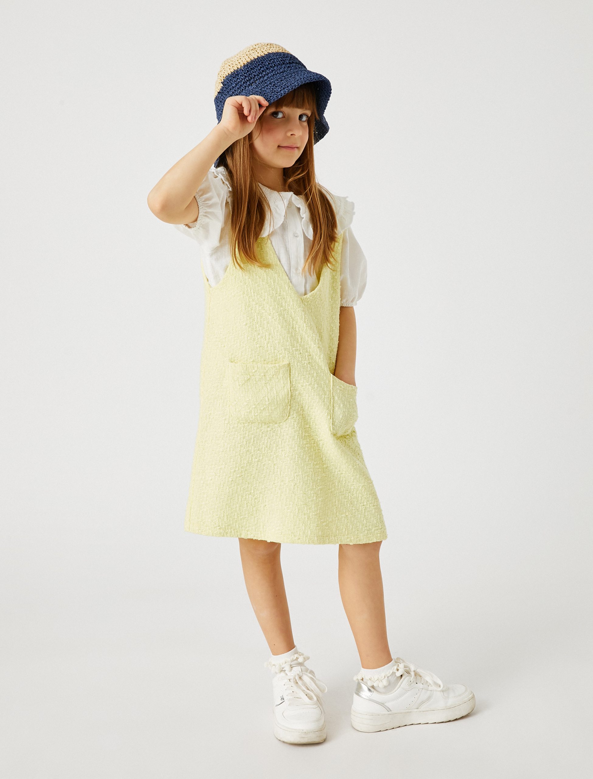 Tags: a-line silhouette, basic style, cotton dress, girls jumpsuit, KIDSWEAR, textured fabric, V-neck