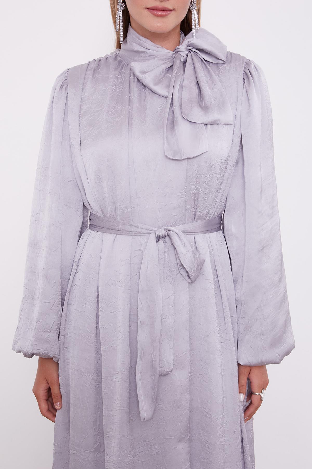 Gray Belted Crinkle Satin Dress