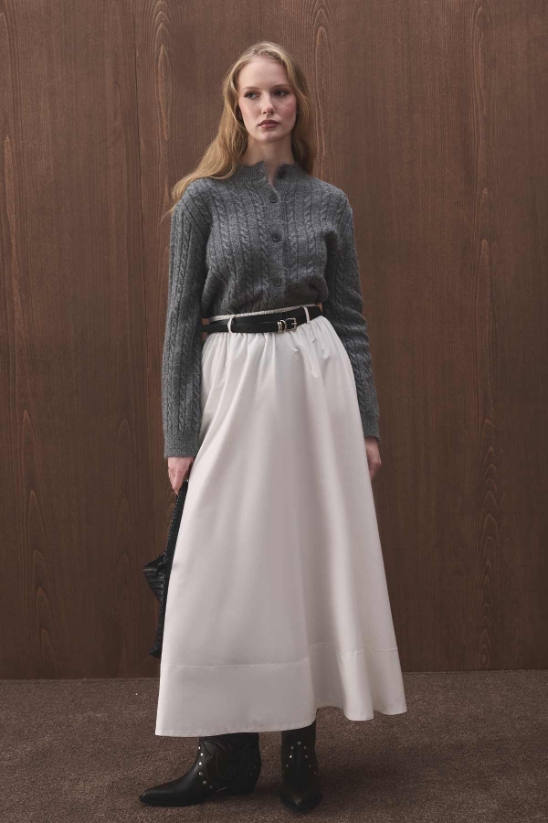 FEATURES OF THE GRAY BRAIDED KNIT CARDIGAN