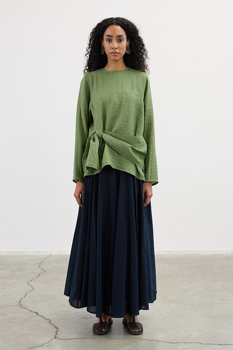 Tags: blouse, boat neck, cotton viscose blend, green blouse, long sleeve, regular fit, summer wear, women's fashion