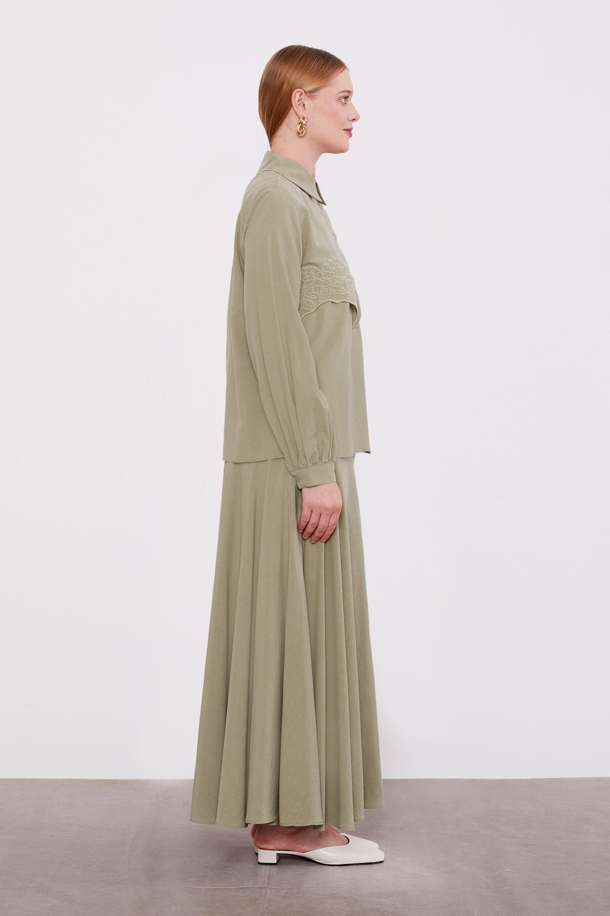 Green Embroidered Detail Cupra Skirt Set