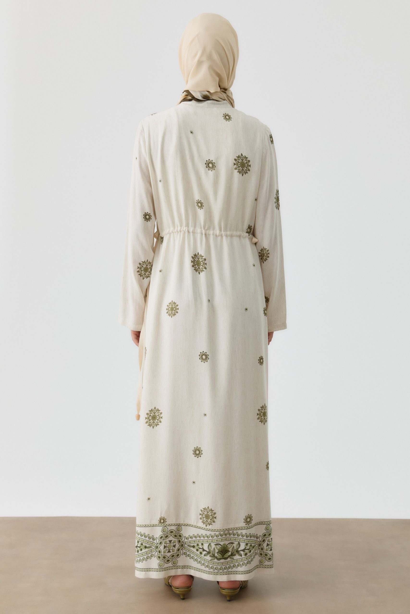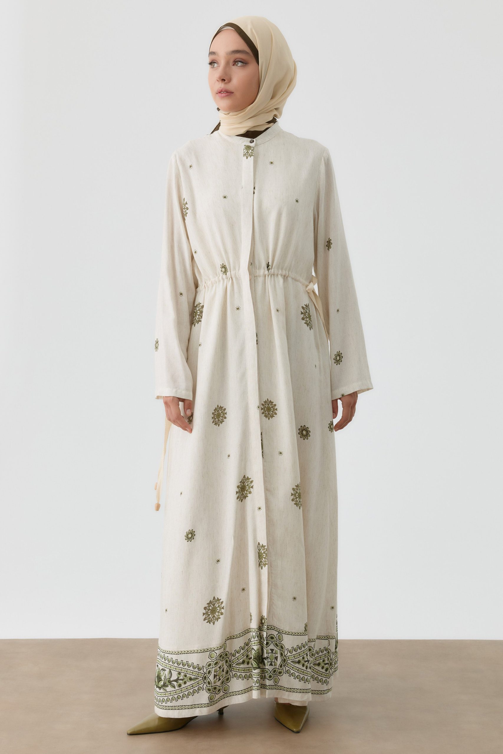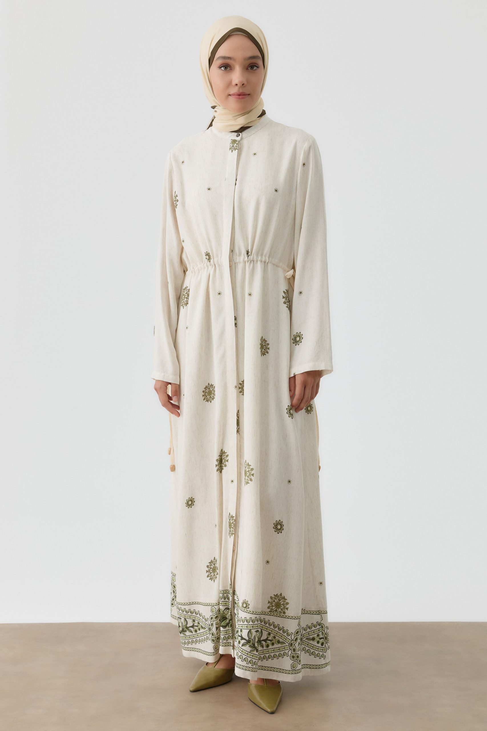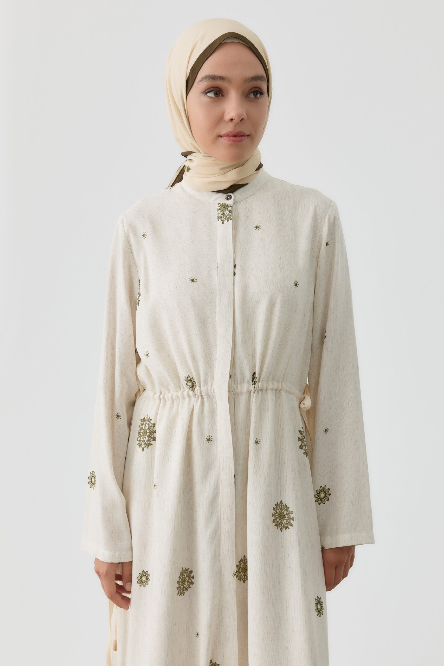 Aller Detailed 100% Cotton Cream Dress