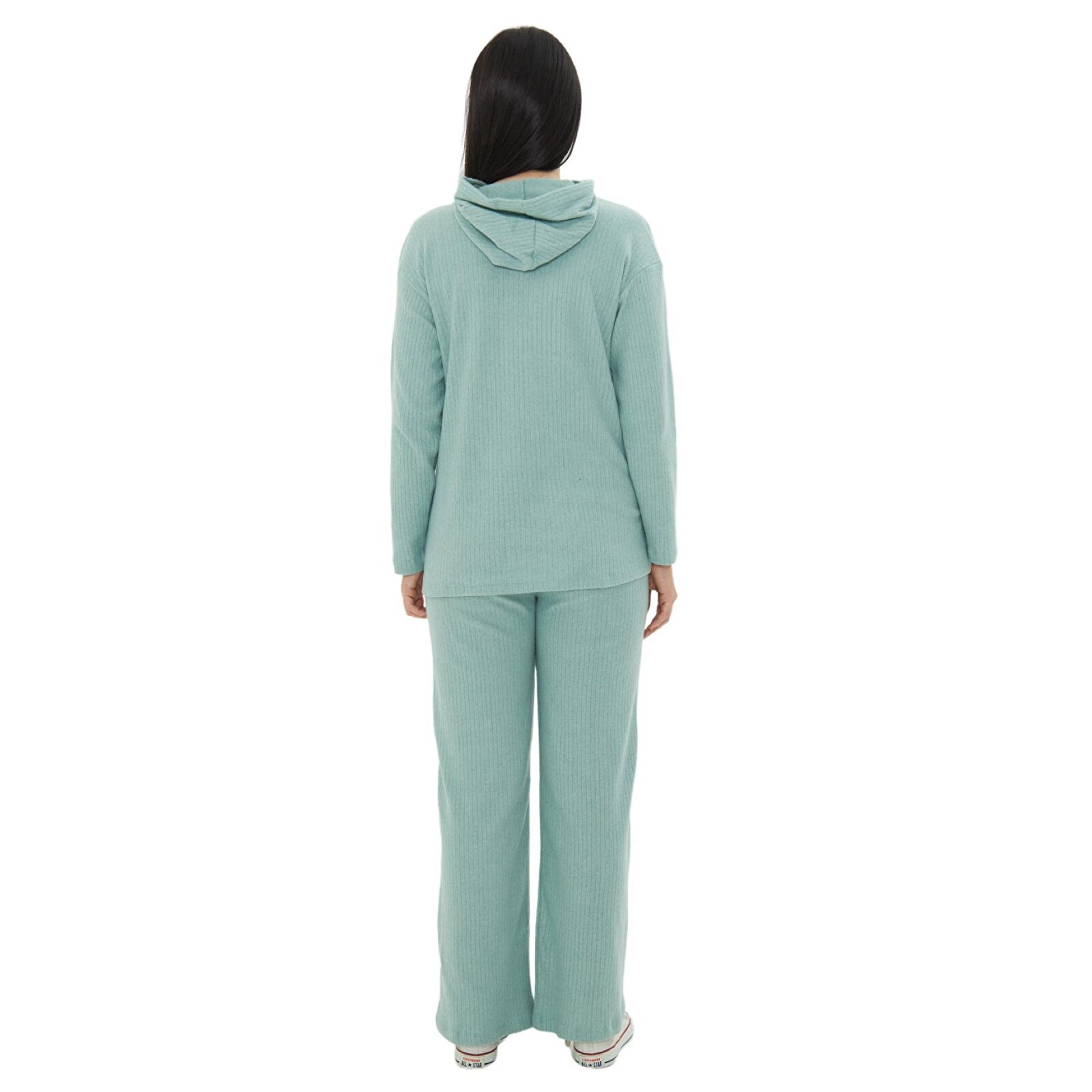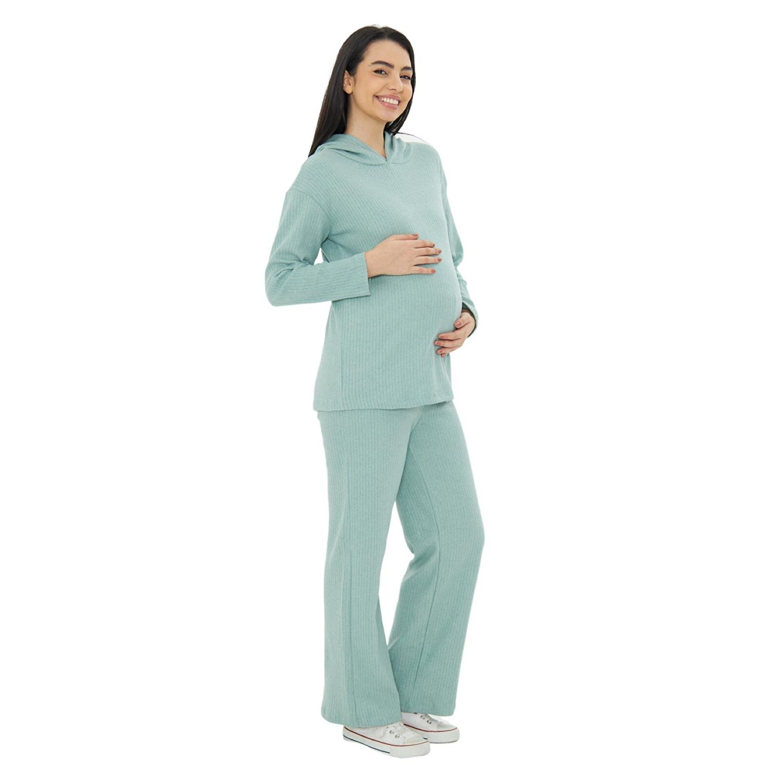 Green Knitted Hooded Women’s Maternity Top and Bottom Set
