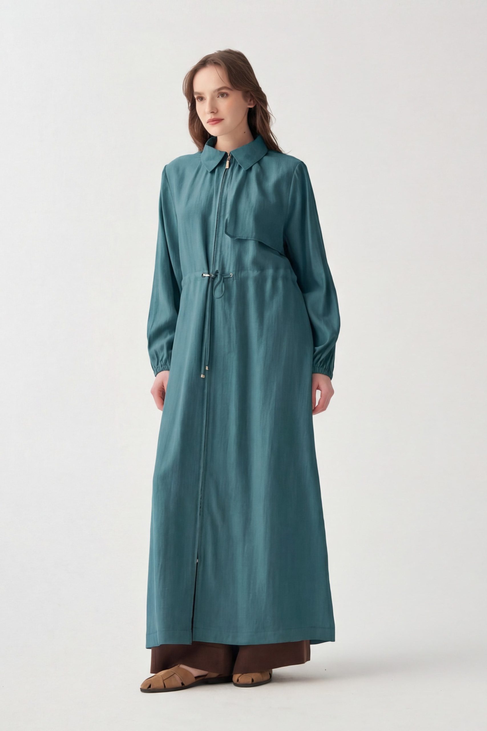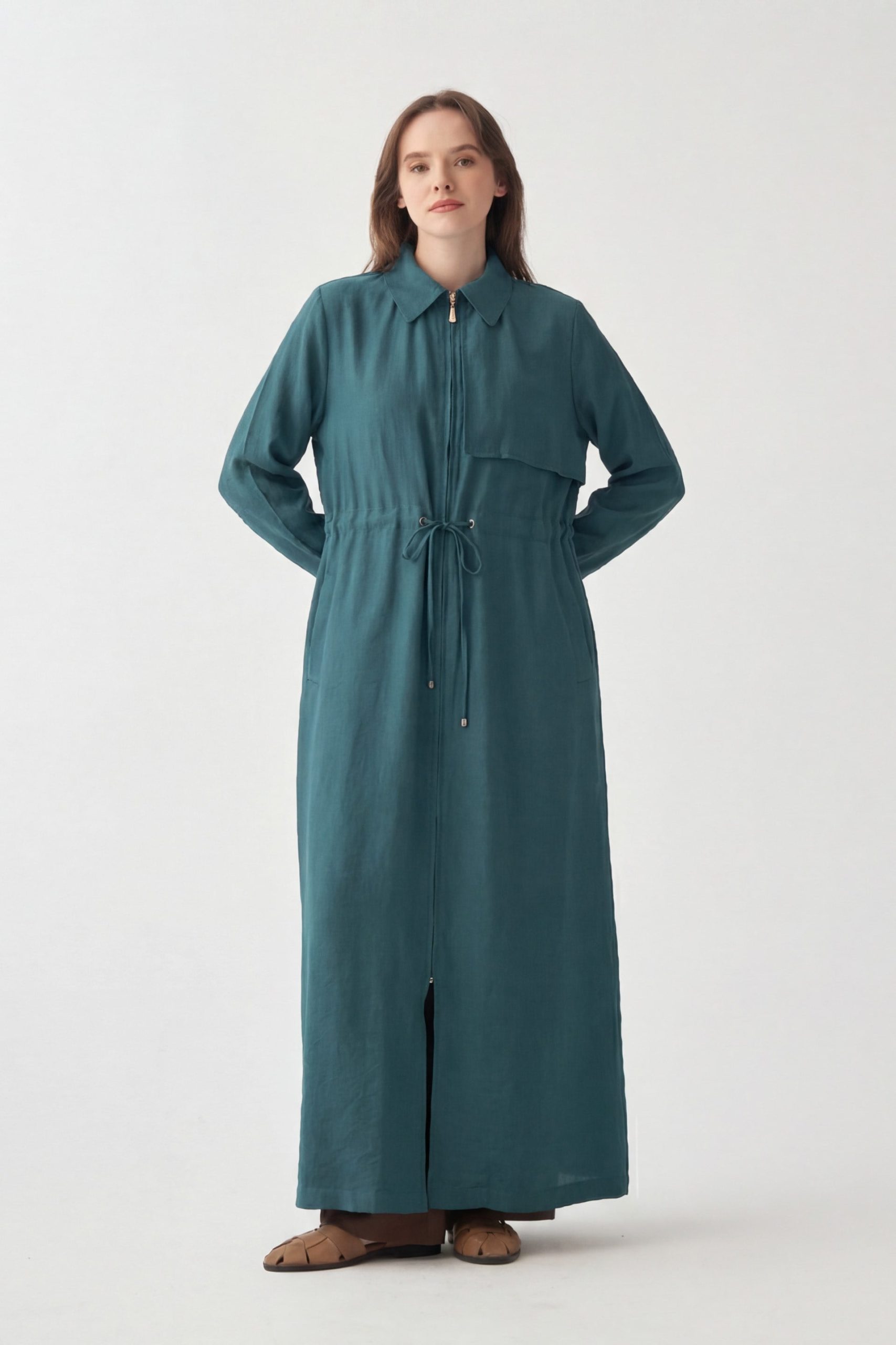 Achieve an elegant look with the Green Relax Wind-Resistant Tensel Abaya, designed for those who seek sophistication in the details. Ideal for both daily wear and special occasions.