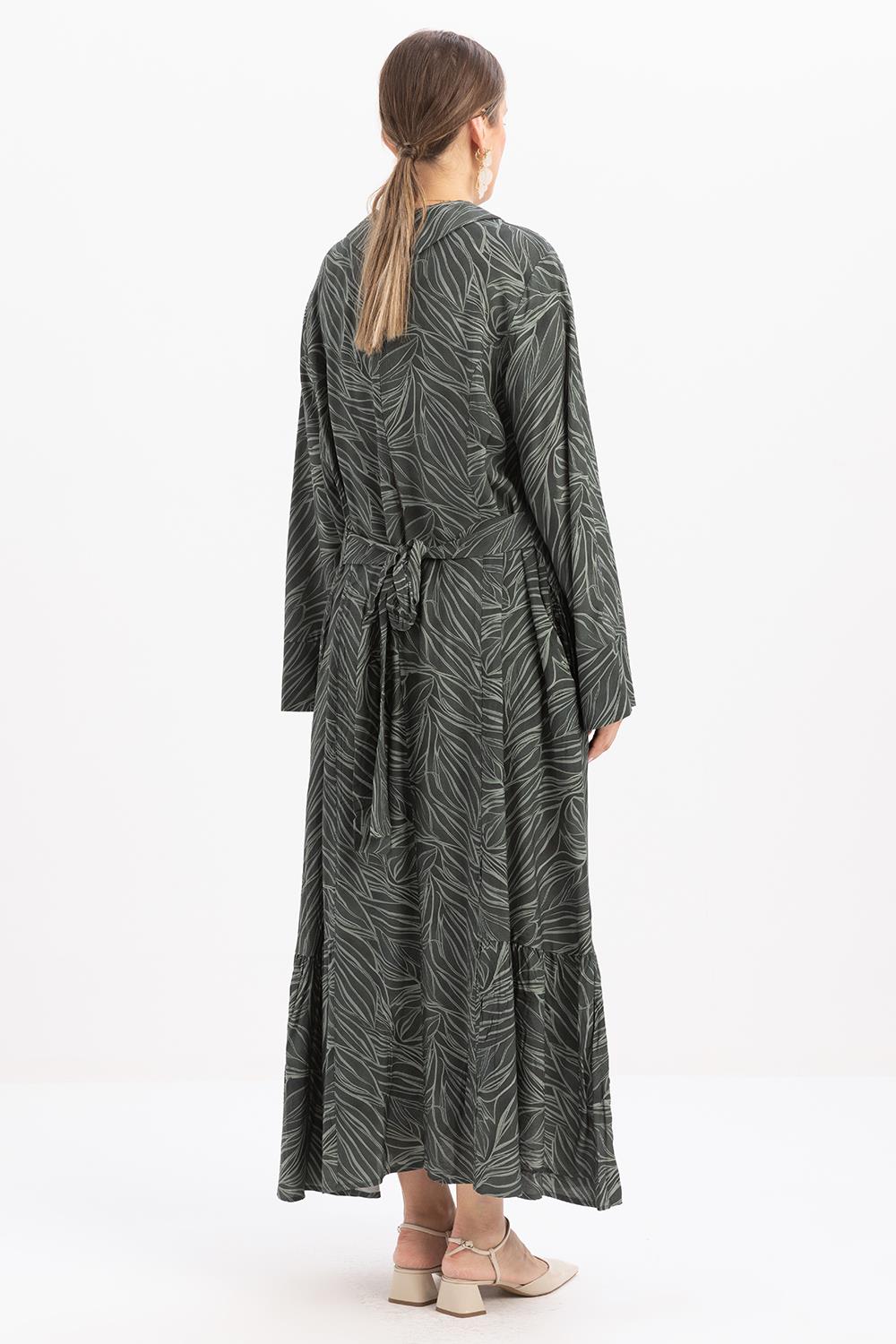 Green Robe-Belted Print Plus Size Dress