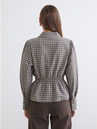 Green Waist-Gathered Plaid Women’s Shirt