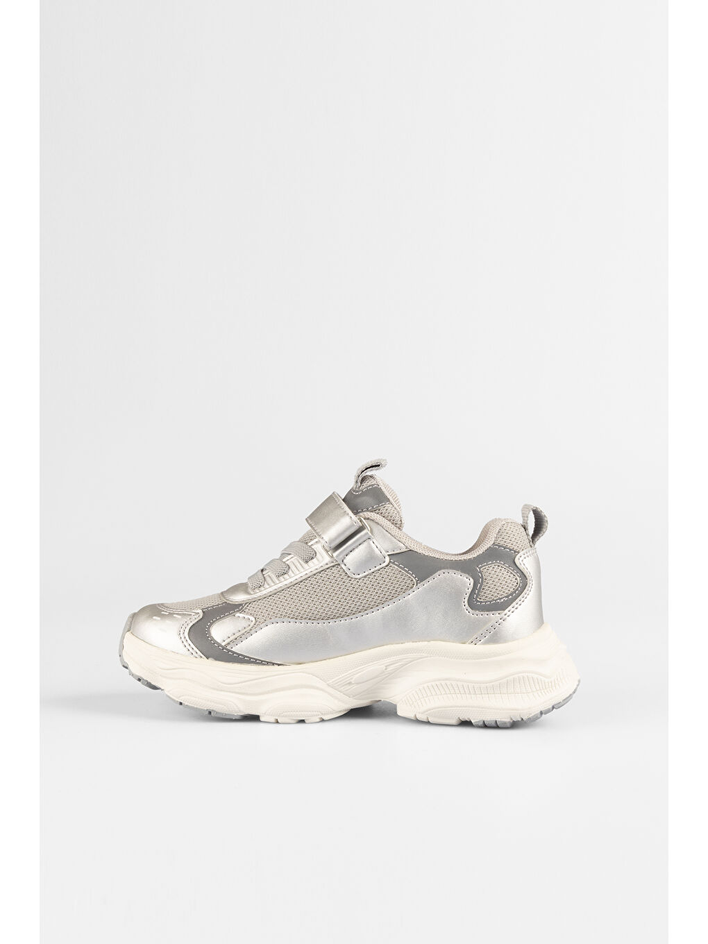 Tags: athletic shoes, children's footwear, girls sneakers, lace-up shoes, preschool shoes, round toe, silver sneakers, Thick Heel