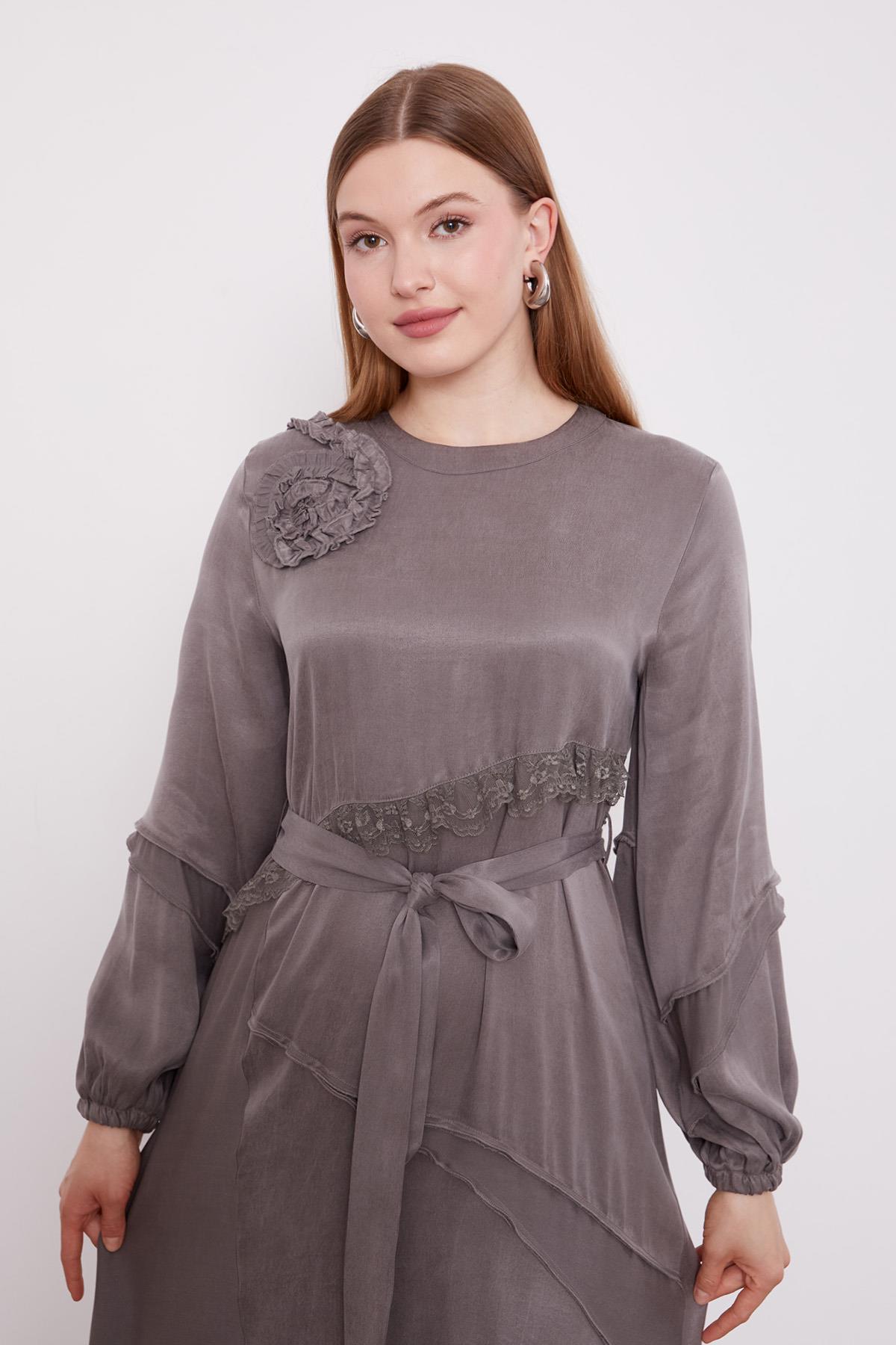 Zarafeti ön plana taşıyan dantel şeritli cupra elbise modelimiz beğeninize sunuluyor. Omuzundaki fırfır gül ve göğüs altındaki dantel detayı elbiseye hava katıyor. Kullanışlı bir omuz çantası ile kombinlendiğinde günlük şıklığınızı yakalıyor. Dökümlü ve doğal duruşuyla vücuda oturmadan zarif bir görünüm sağlıyor. Levidor farkı ve güvencesiyle birbirinden şık ve kaliteli modellere sahip olmak artık çok kolay.