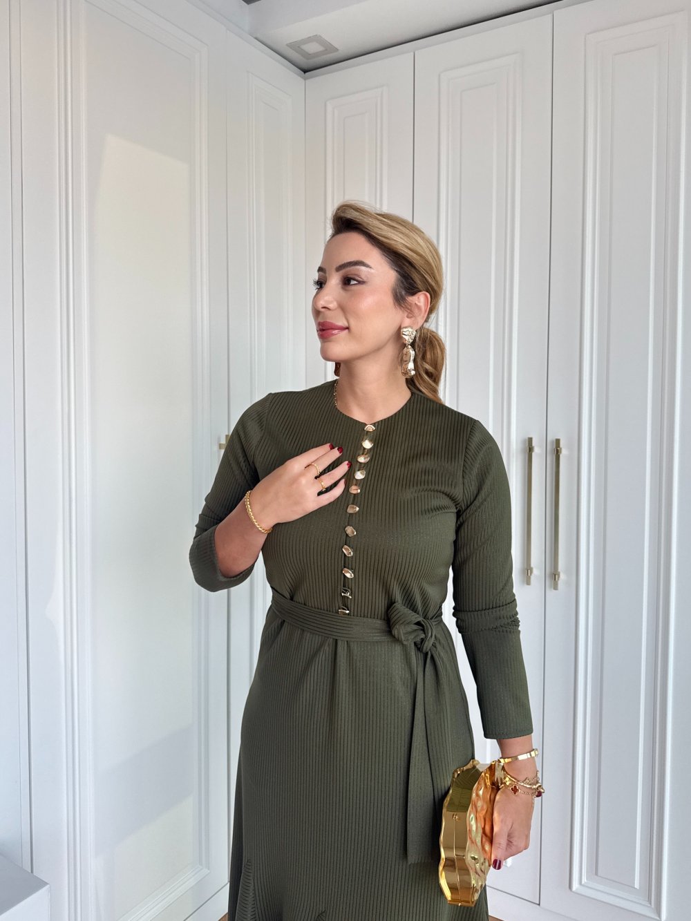 Keten Tensel Elbise Haki