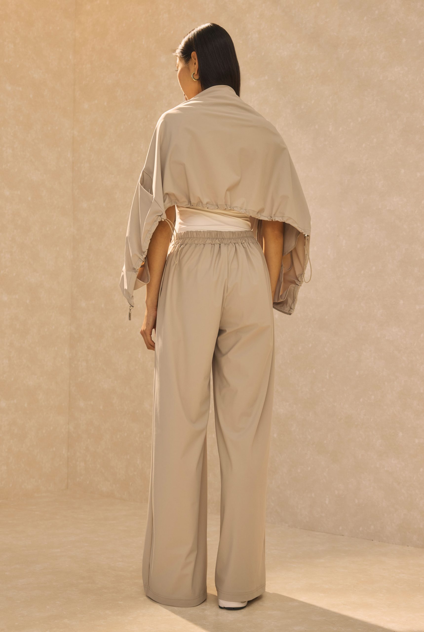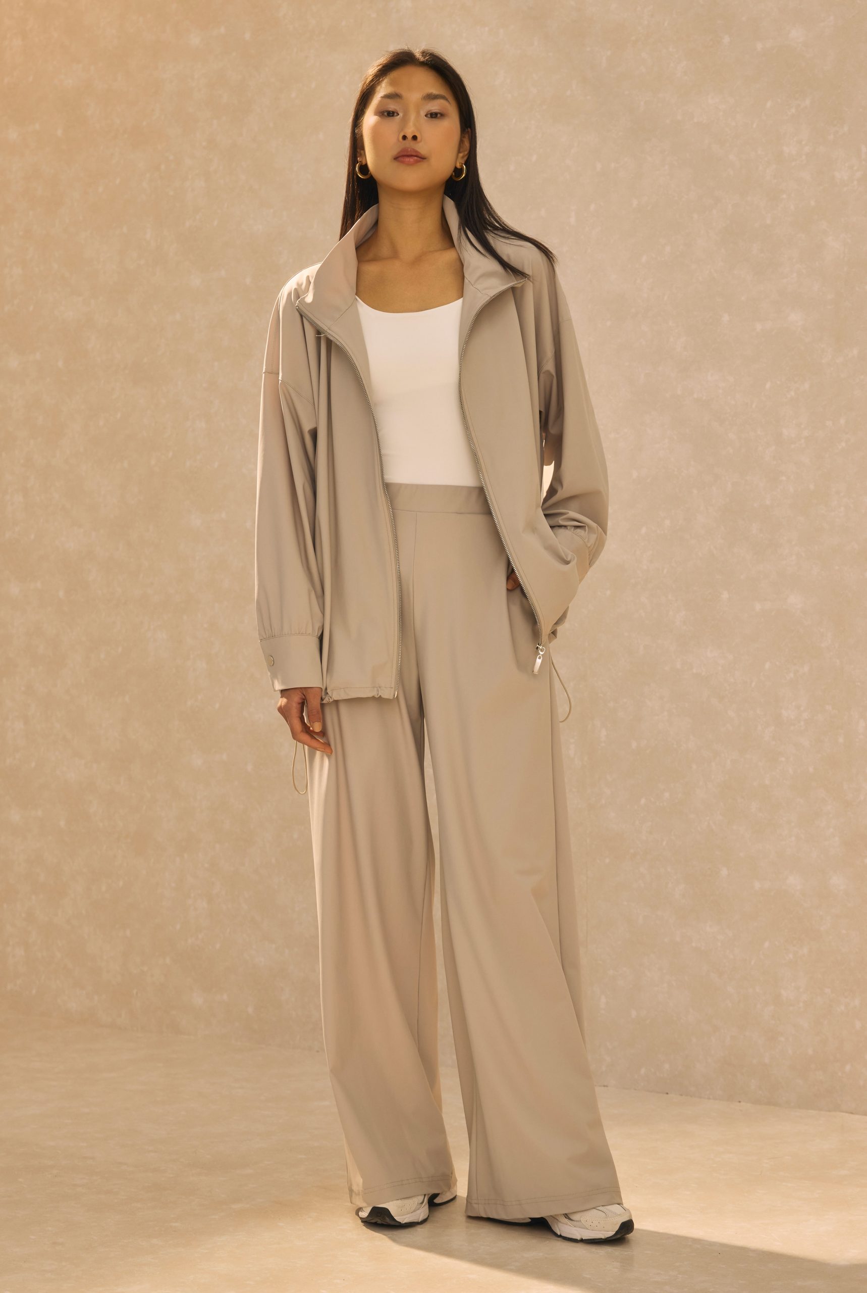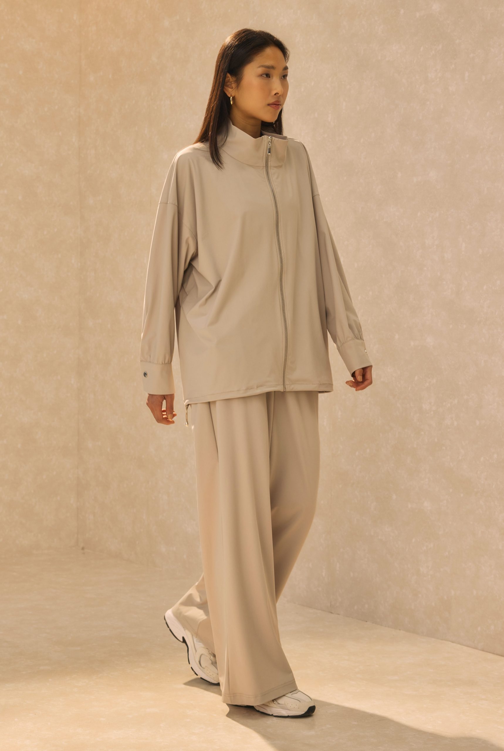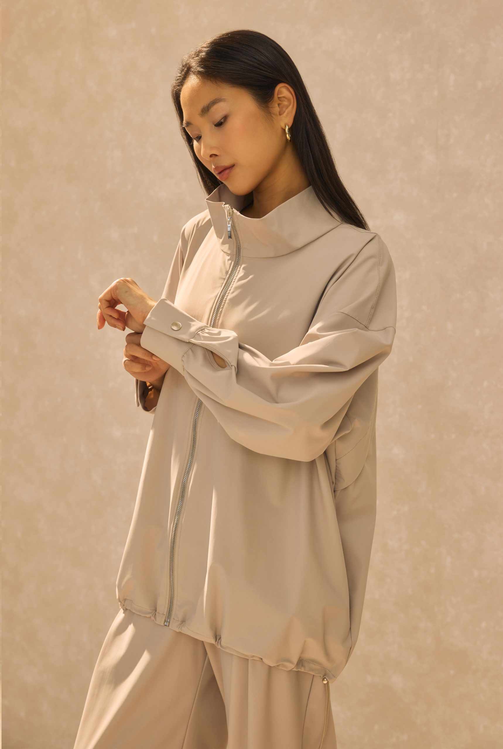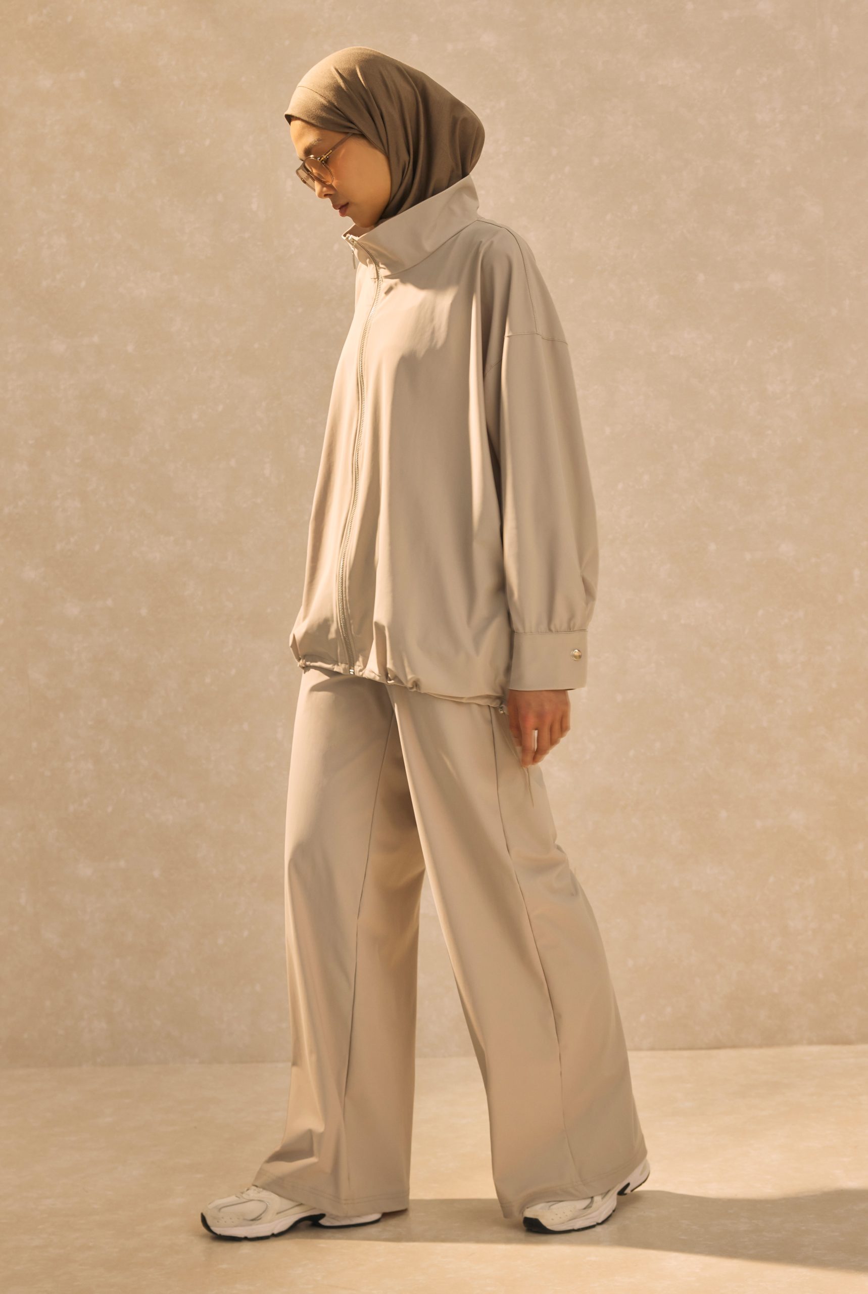 Made from a blend of 79% polyamide and 21% elastane, this high-neck tracksuit set ensures long-lasting use thanks to the breathable and durable nature of the fabric. While the elastane content provides freedom of movement, its loose fit and high-neck design offer both sporty and daily elegance together. It is an ideal choice for casual and comfortable combinations.
