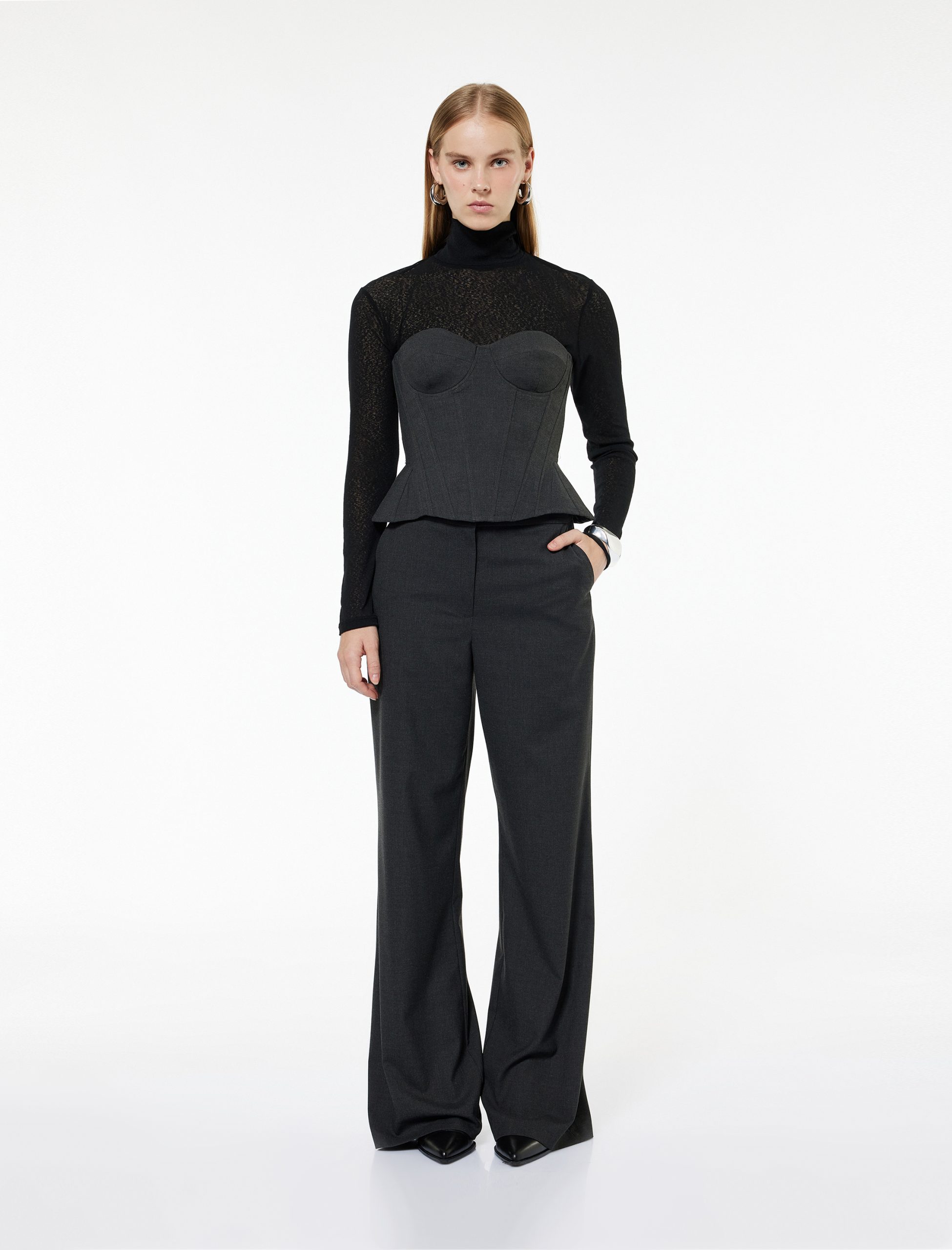 High-Waist Wide-Leg Trousers with Pocket Detail and Viscose Blend
