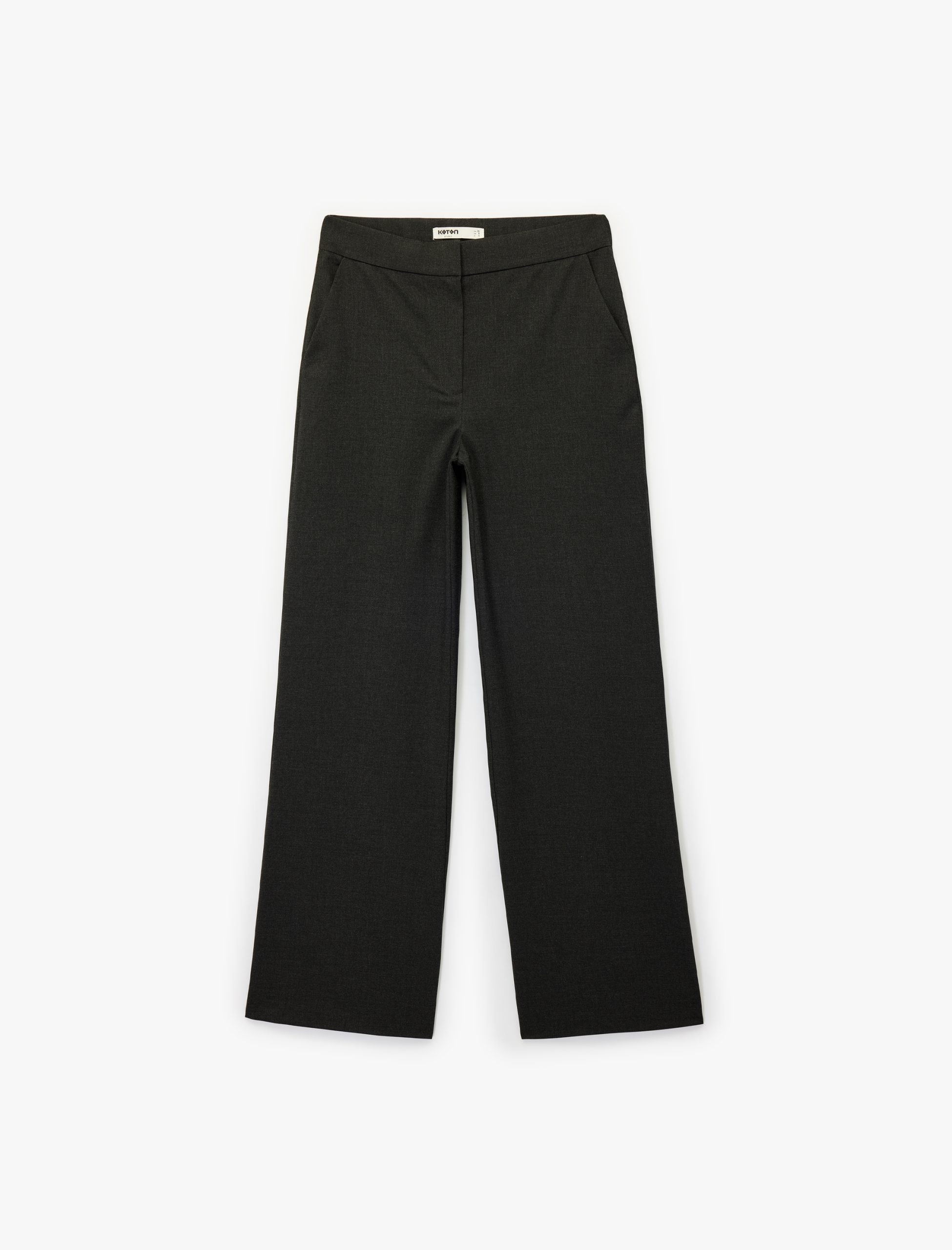 These high-waist wide-leg trousers offer an elegant and comfortable silhouette, ideal for both daily wear and office style. The design combines classic and modern details, with functional double pockets adding both utility and chic appeal. The regular fit ensures all-day comfort while providing a flattering shape. Highly versatile for styling, these trousers pair perfectly with both t-shirts and blouses. Styling Tip: For office elegance, combine these wide-leg trousers with a stylish blouse and sleek heels. For a comfortable everyday look, complete your style with a basic t-shirt and sneakers. Enhance this combination with a minimalist bag and delicate jewelry. Product Features: Waist Type: High-Waist, Pocket Type: Flap Double Pockets, Fit: Regular, Fabric: 63% Polyester, 35% Viscose, 2% Elastane, Style and Silhouette: Wide-Leg, Usage Area: Daily Wear, Office Wear. Add a modern touch to your style with Koton’s elegant trouser design. Discover the Koton trouser collection now! — Technical Details — Model Measurements: Height: 170cm / Waist: 58cm / Chest: 79cm / Hips: 88cm, Model Size: Jeans: 27/32 / Model Size: S, Fabric: 35% Viscose, 2% Elastane, 63% Polyester, Silhouette: Wide Leg, Waist Height: High-Waist, Product Type/Style: Wide Leg, Product Sub-Brand: City fashion, Seller/Manufacturer/Importer Name: Koton Mağazacılık Tekstil Sanayi ve Ticaret A.Ş., Postal Address: Ayazağa Mah. Maslak Ayazağa Cad. No:3 İç Kapı No:5 Sarıyer/İstanbul, Email Address: mim@koton.com